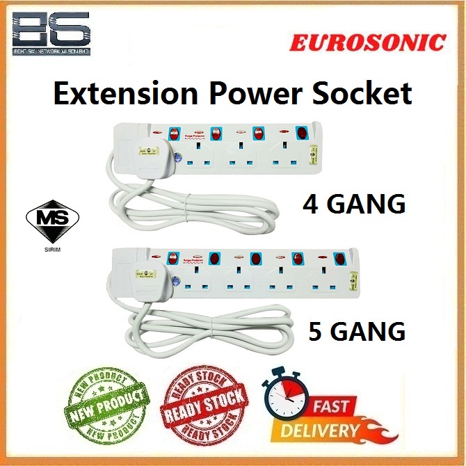 Eurosonic Extension Socket w Neon Plug Adapter | 4Gang | 5Gang | 2M-5M | Sirim
