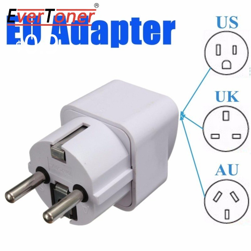 EverToner Portable UK US AU To EU European 2 Pin Power Socket Plug Adapter Travel Converter Universal