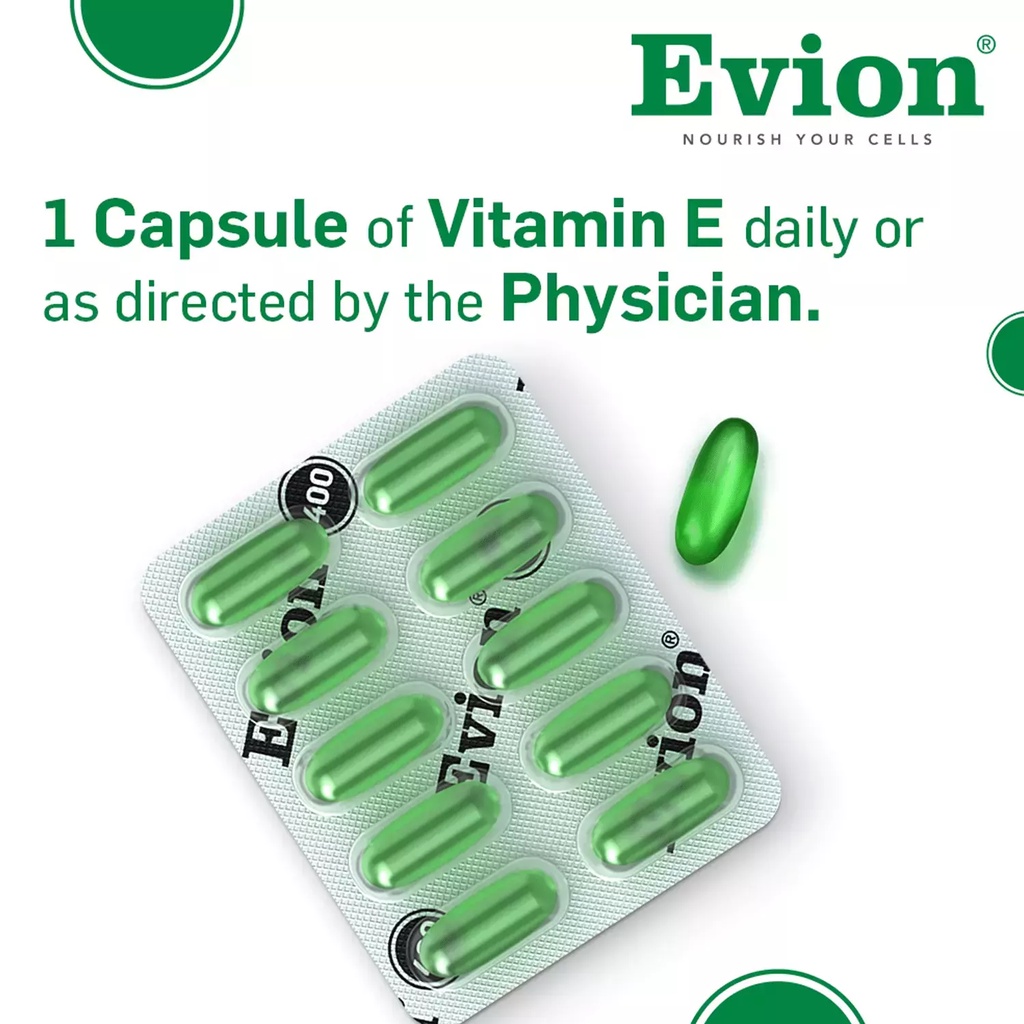 Evion Vitamin E Skin, Hair and Nail | 400mg | 10 Capsules | 1 Strip | Expiry 05/2026