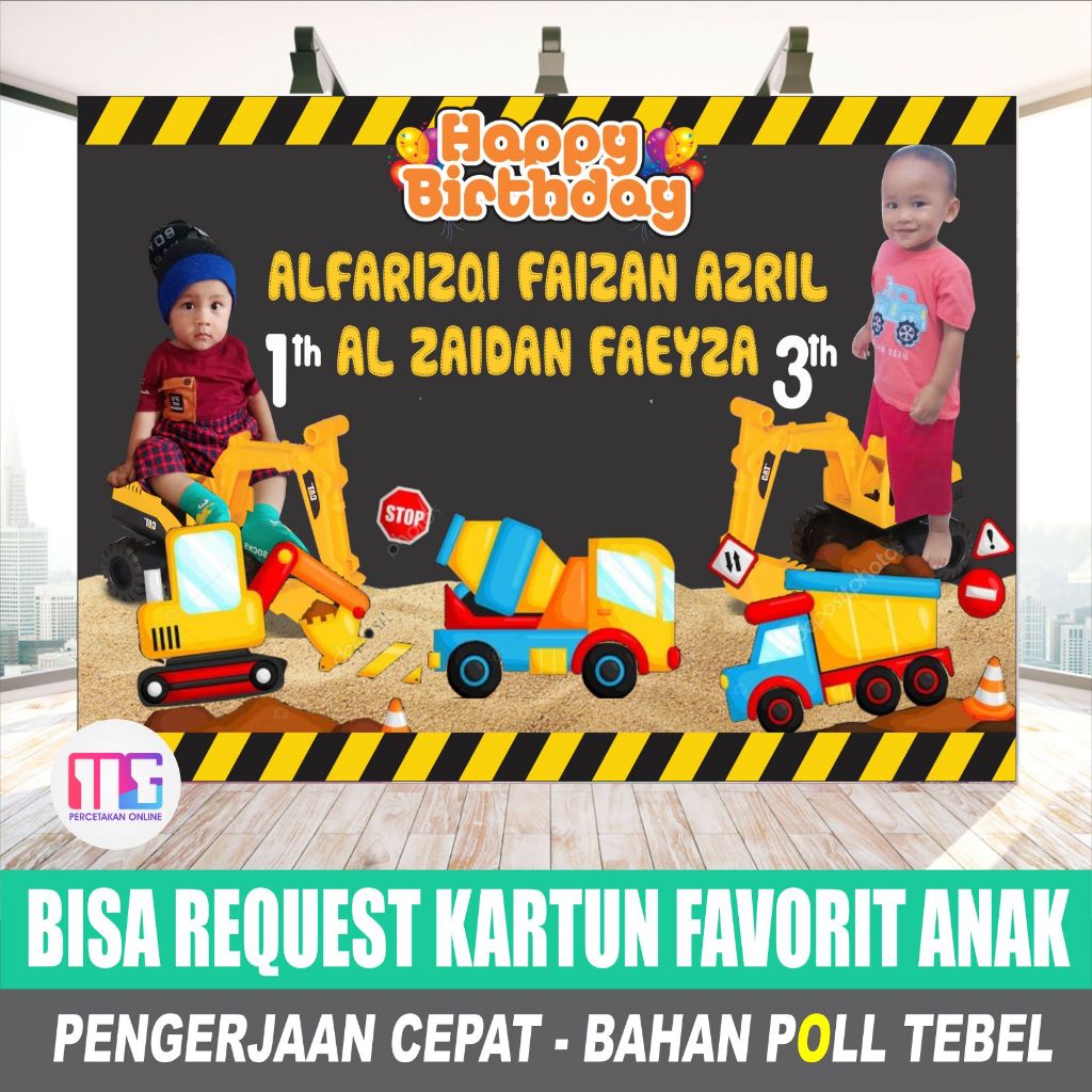 Excavator theme boy's birthday banner - excavator heavy equipment birthday banner