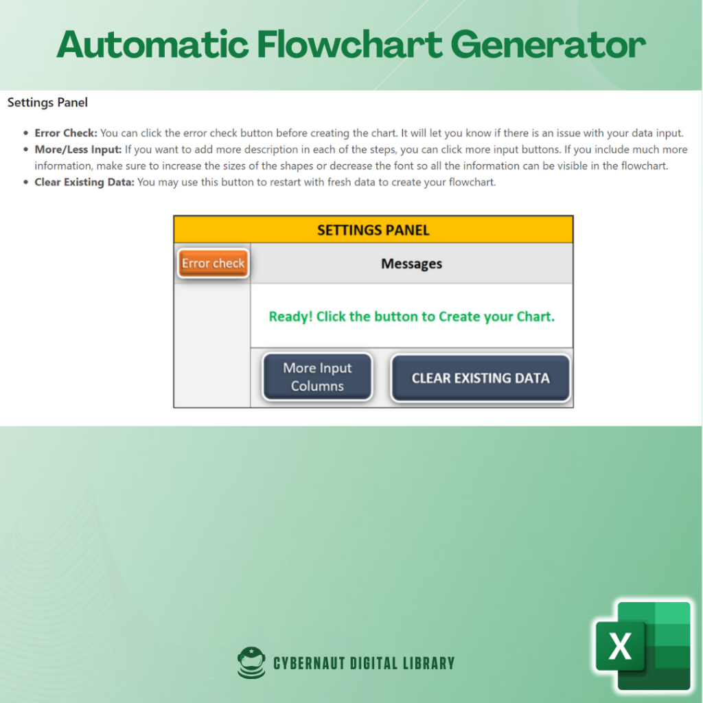 Excel Template - Automatic Flowchart Generator Template (Free 12-in-1 Bundle Excel Course Books)