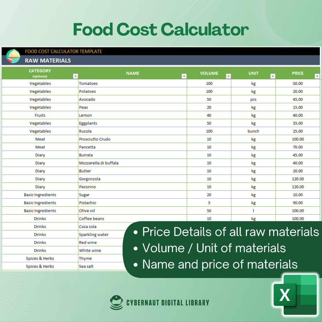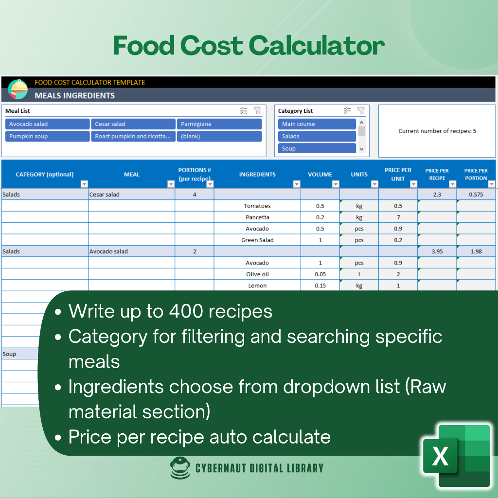 Excel Template - Food Cost Calculator Template (Free 12-in-1 Bundle Excel Course Books)