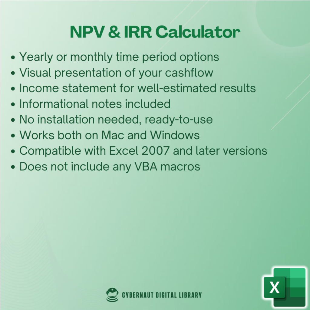 Excel Template - NPV & IRR Calculator Template (Free 12-in-1 Bundle Excel Course Books)