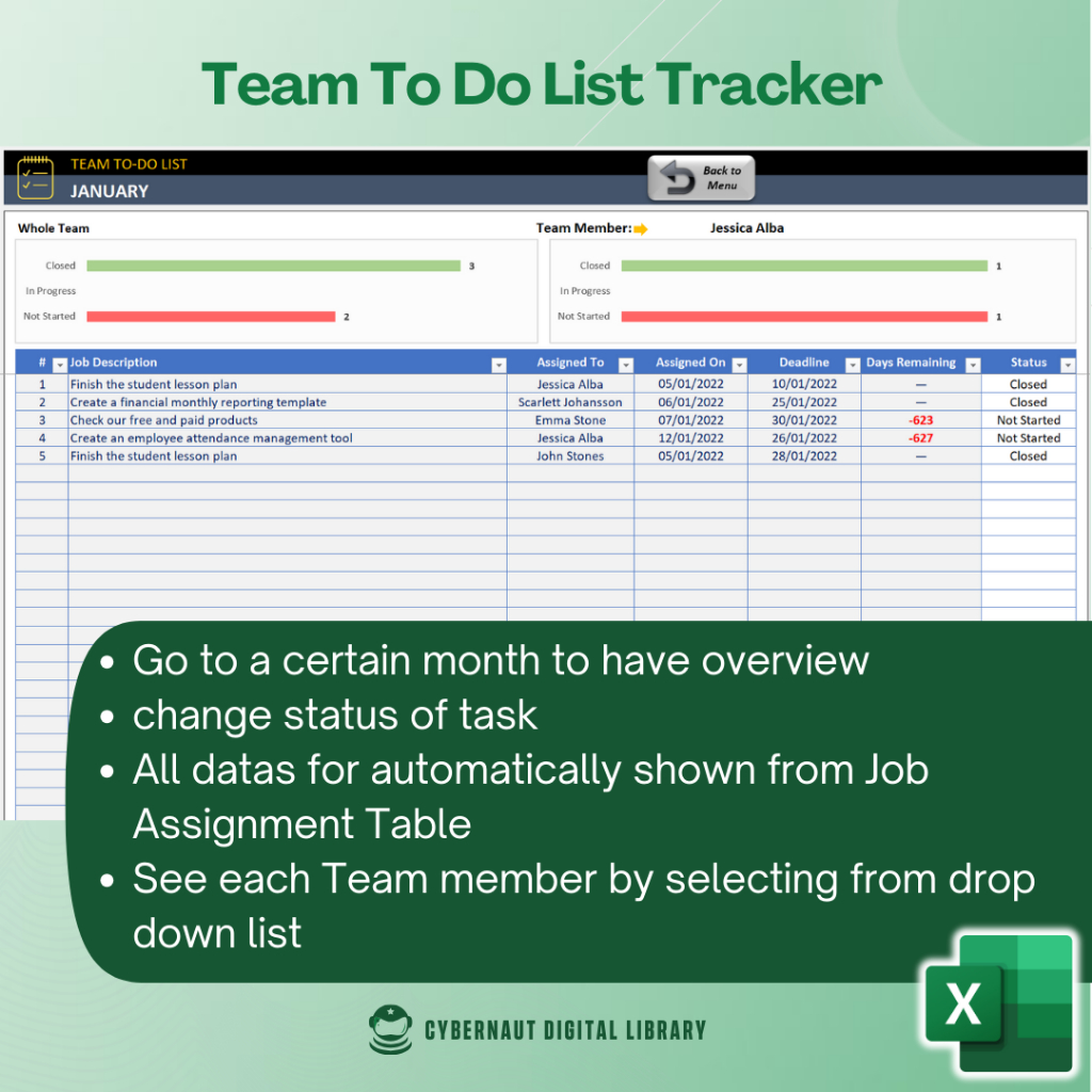 Excel Template - Team Task Management To Do List Tracker (Free 12-in-1 Bundle Excel Course Books)