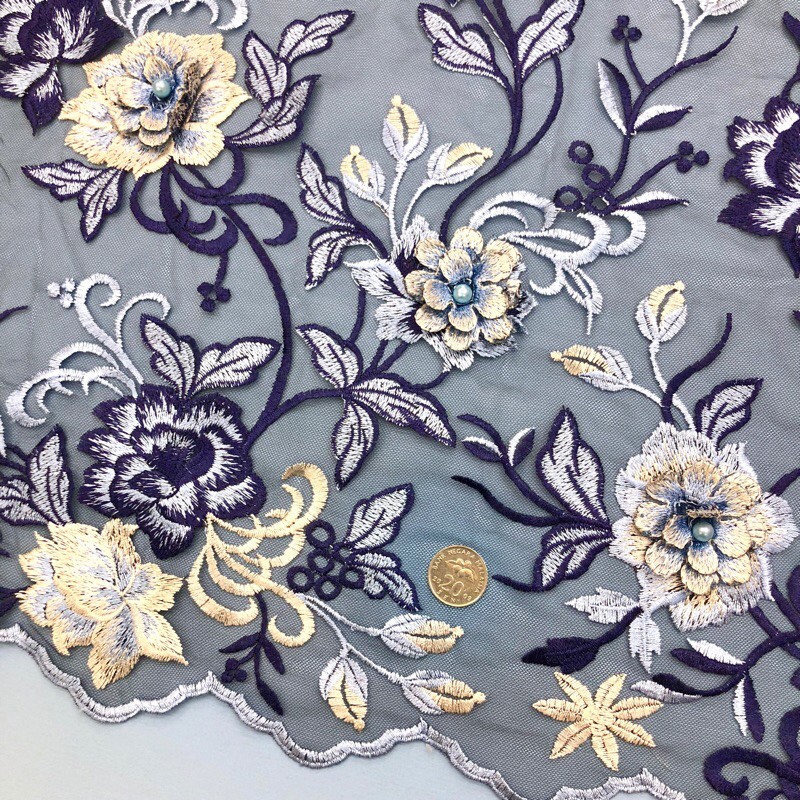 Exclusive 3D Floral Embroidered Lace & Plain Lining Fabrics / Wedding Floral Lace / Set Kain Lace dan Kain Lining Plain