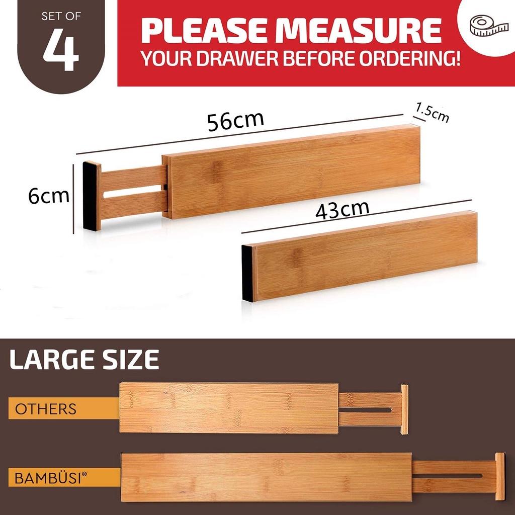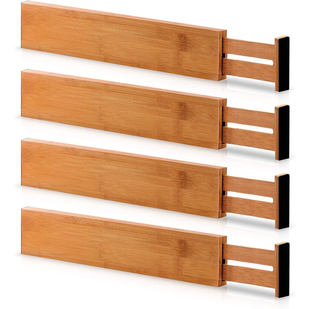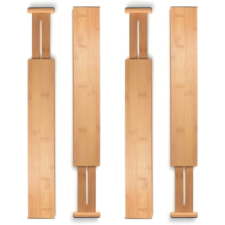 Expandable Bamboo Drawer Dividers, Adjustable Utensil Organizer Separators Pembahagian Rak Pemisah Penganjur