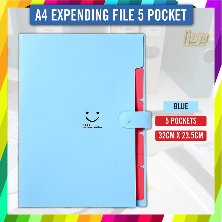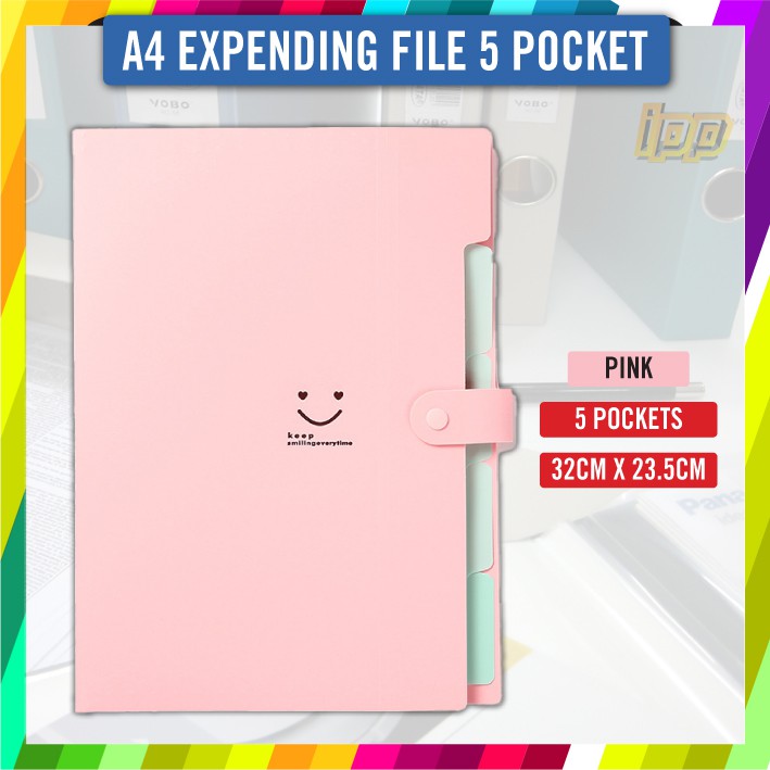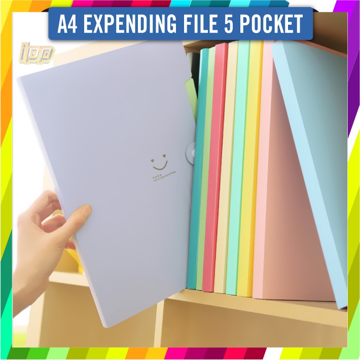 Expanding File A4 5 Pocket / A4 5 Pockets Documents Organizer / A4 Paper File Folders-10 Colour Ready Stock