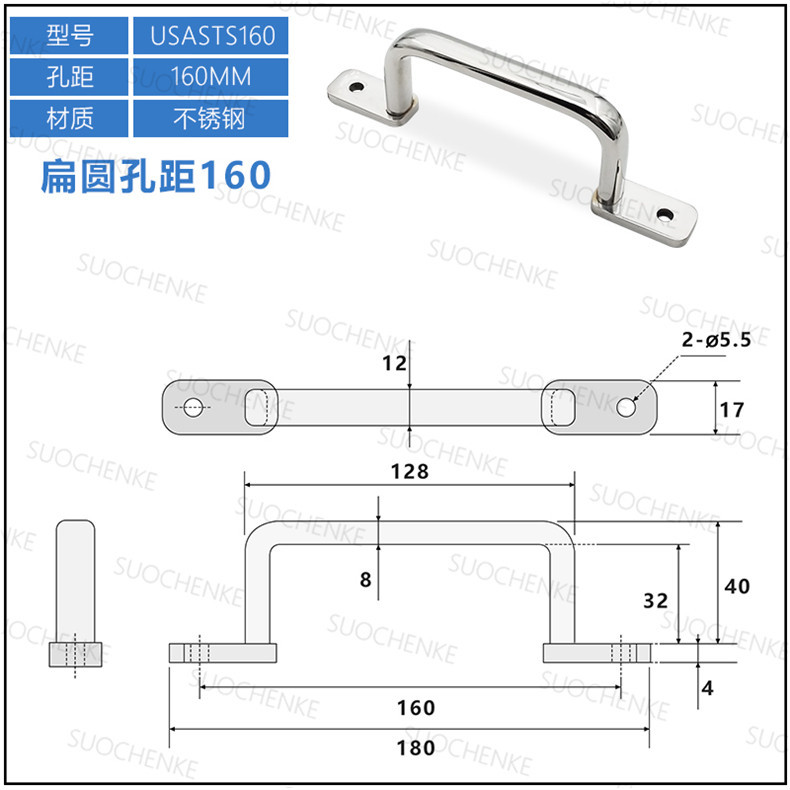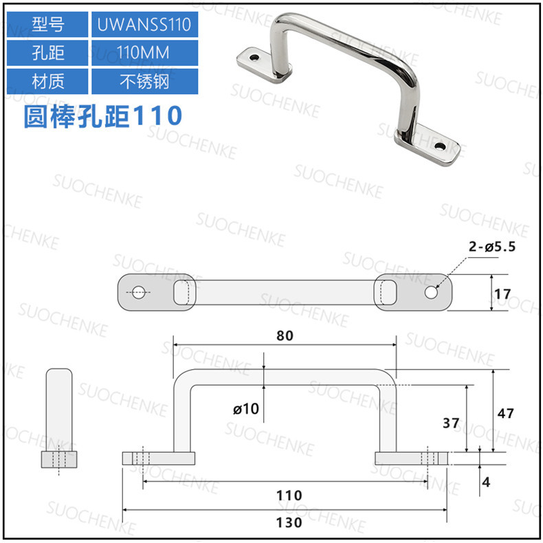 Export ZH304 Stainless Steel Industrial Handle Angle Type Double Curved Flat Round Steel Handle UHFNSS Box Cabinet Handle UWANSS110