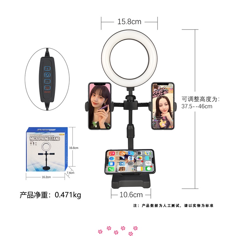 Extendable Desk Dual Handphone Holder Table Tripod Stand with Heavy Base for Livestreaming