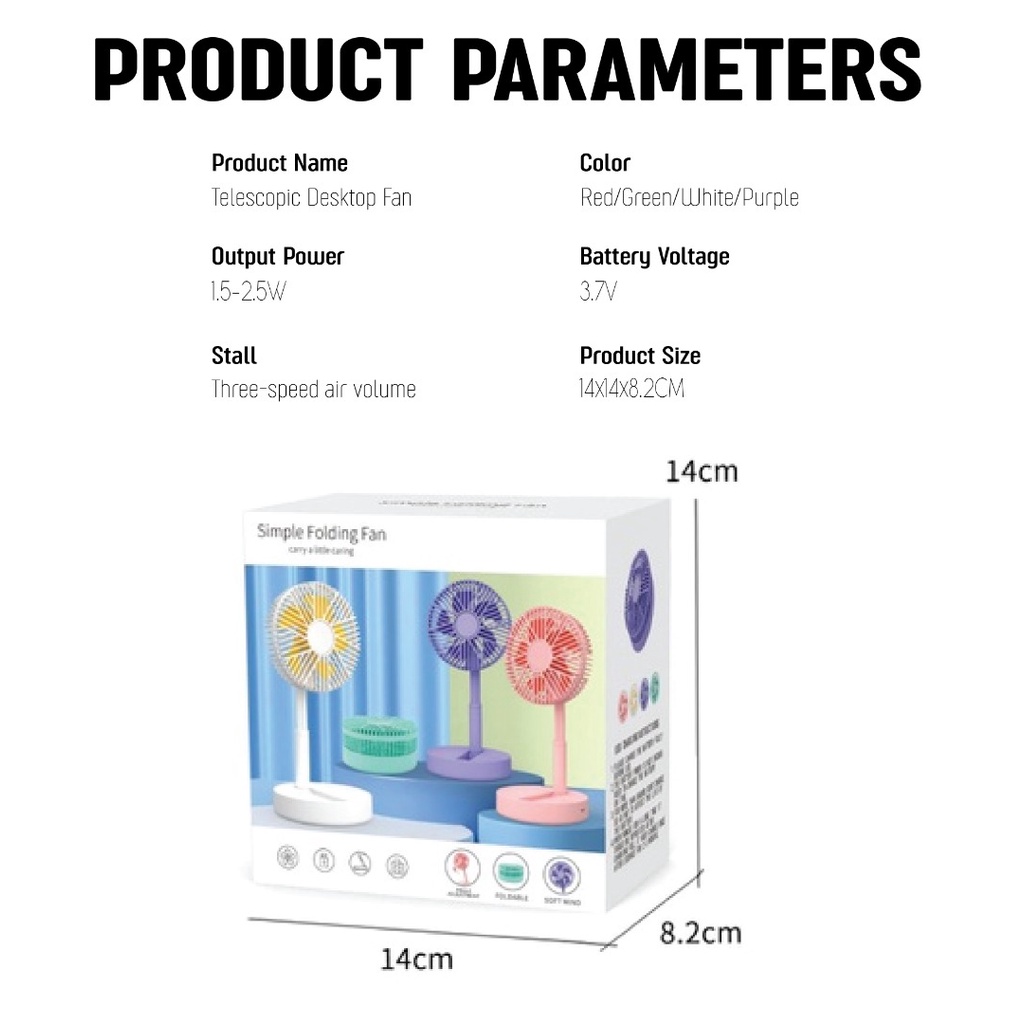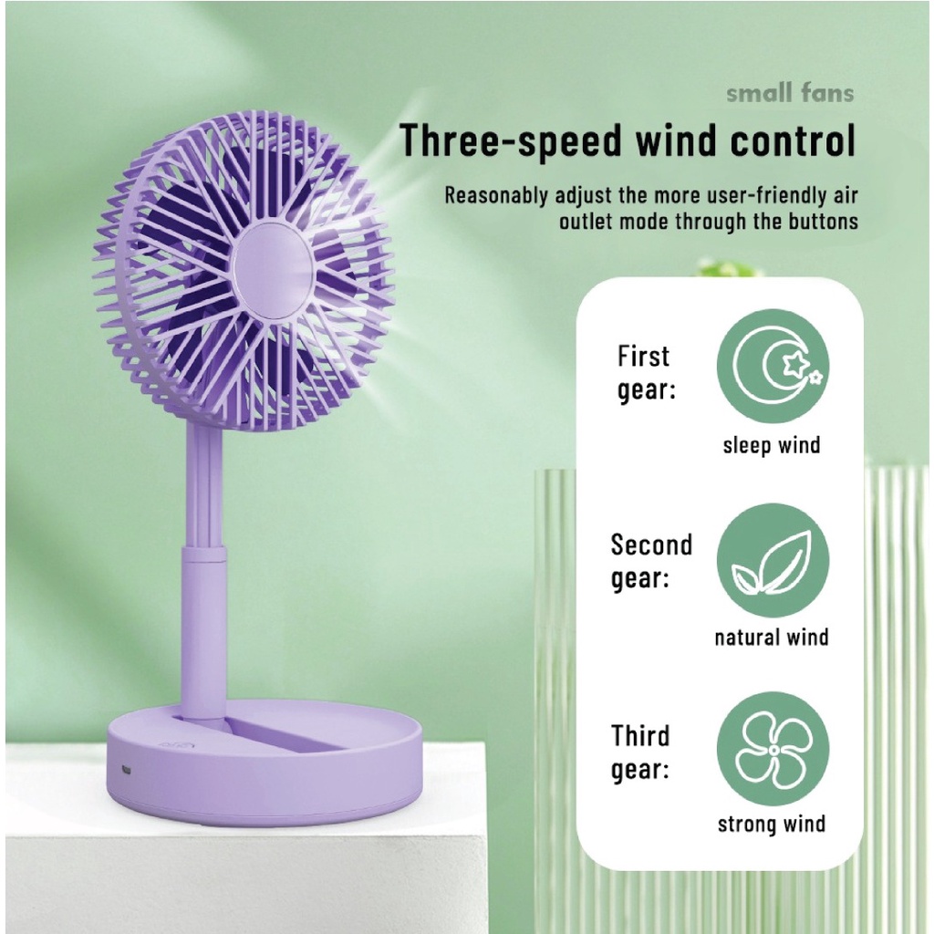 Extendable Telescopic Foldable Fan Desktop Office Table Stand Fan USB Rechargeable Three Speed Portable Mini Fan