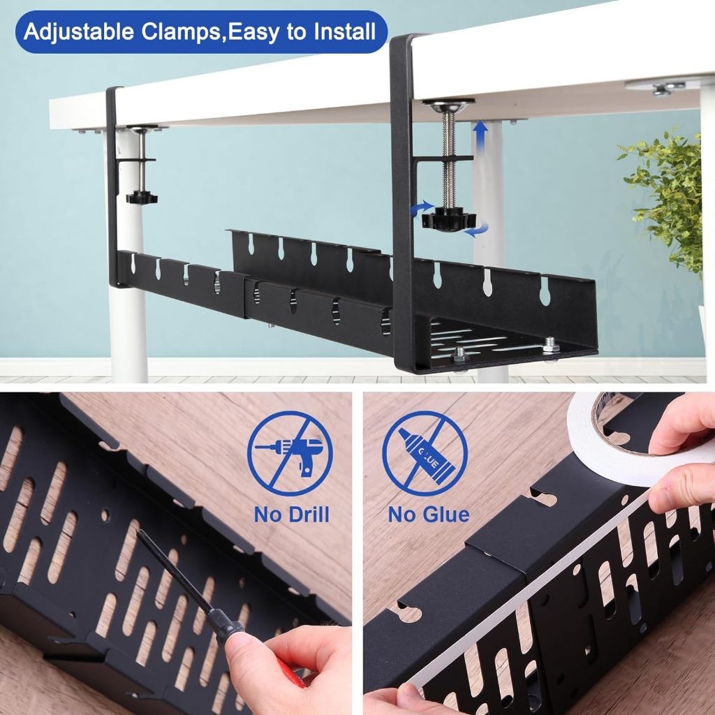 Extendable Under Desk Cable Management Wire Organizer Tray Table Pc Cabel Manager Rack Computer Cord Storage Socket Hold