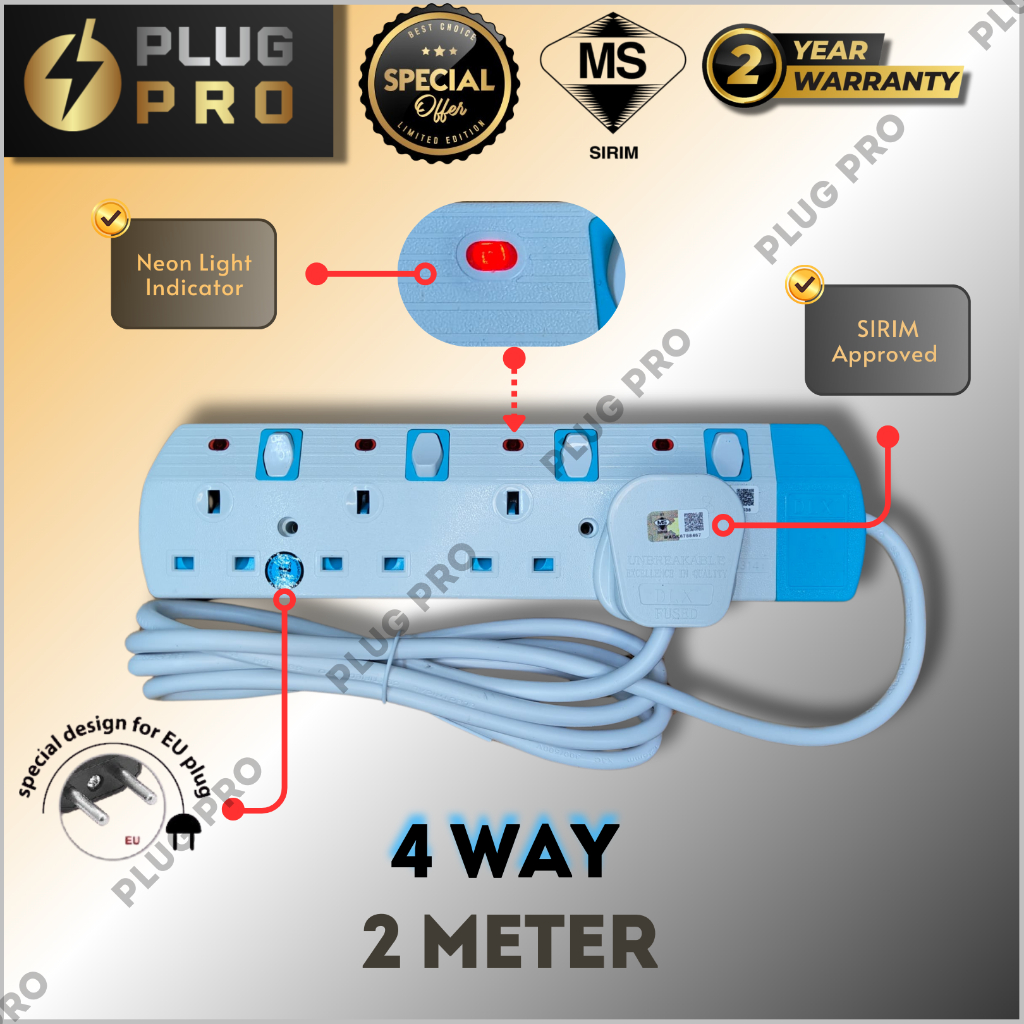 Extension Plug 2 / 3 / 4 / 5 WAY - D2 Trailing Socket Extension Soket Wayar 2 METER / 5 METER