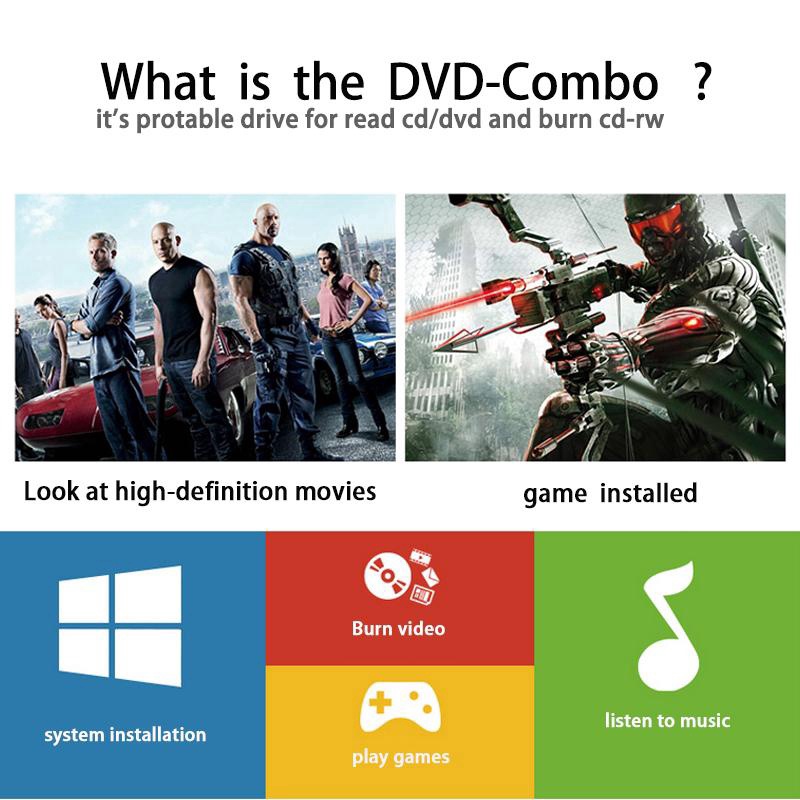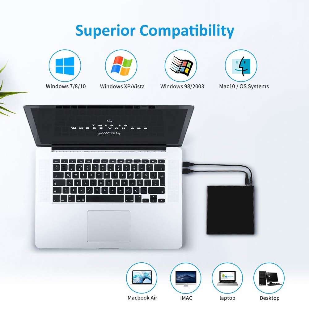 External DVD Drive USB 3.0 Optical CD RW Rom Player Slim Portable Writer Burner Reader R for Laptop PC Desktop Computer