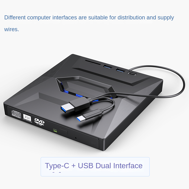 External DVD Drive for Laptop USB 3.0 Type-C Portable CD/DVD Optical Drive Player Writer CD Burner with 2 USB 3.0 Ports, Type C Port SD Card Reader for Laptop PC MacBook Mac Window