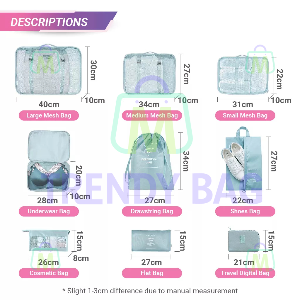 Extra Large Type 6/7/8/9 in 1 Set Travel Packing Clothes Storage Organizer Bag Pouch Multi Size Organizer Bag