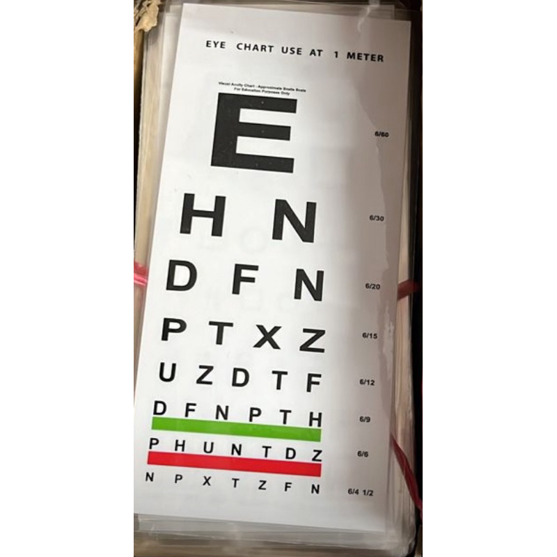 Eye Chart Laminated( Pocket size, Use at 1 meter). Pocket Snellen Chart