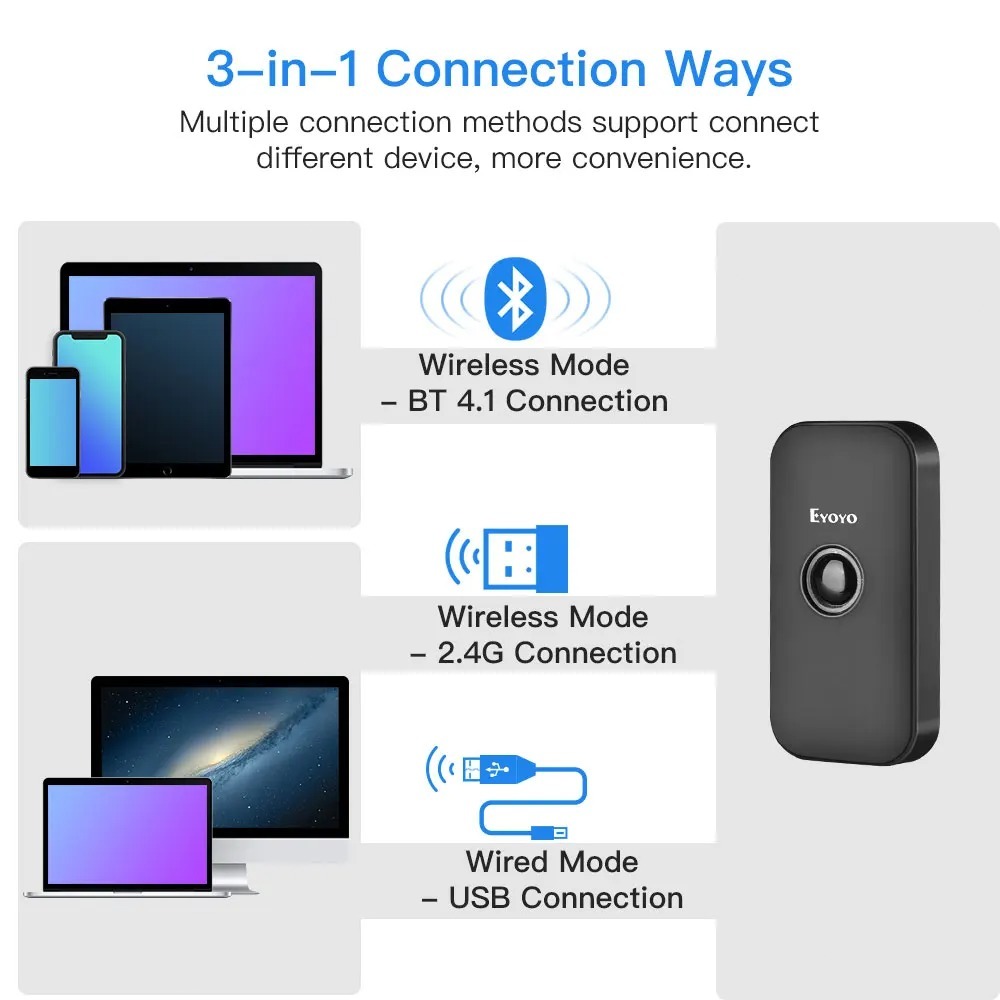 Eyoyo EY-009P Mini Handheld Wireless 1D 2D QR Code Reader Screen Scanning PDF417 Portable Bluetooth Barcode Scanner For Phone&PC