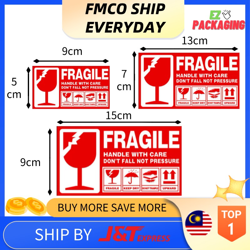 Ez Packaging Fragile Sticker 50 100 pcs 9*5cm 13*7cm 15*9cm Big Size