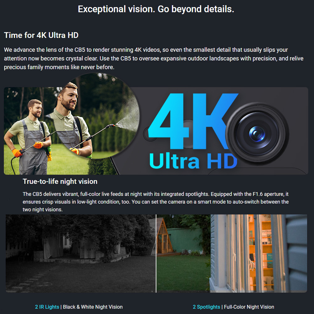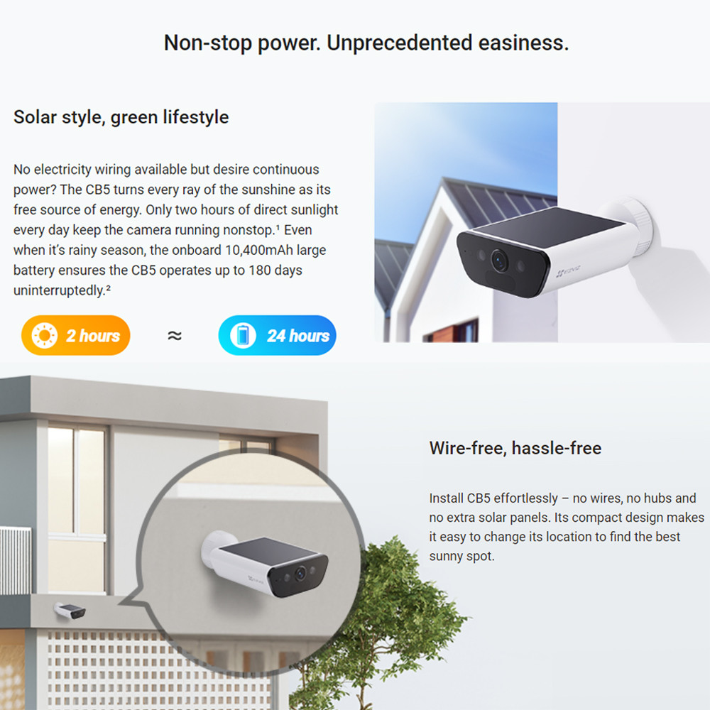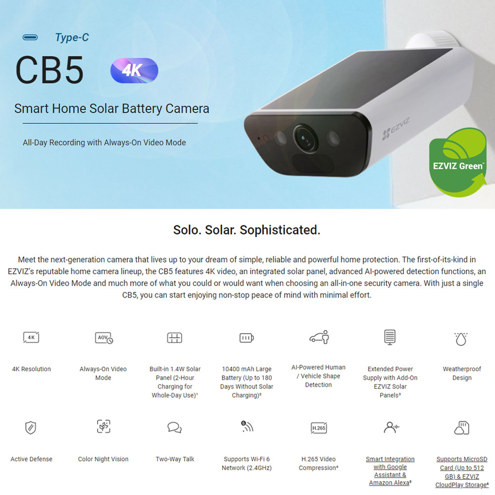 Ezviz CB5 4K 8MP Two Way Talk Built-in Solar Panel Battery Powered Color Night Vision Smart Home Solar Battery Camera