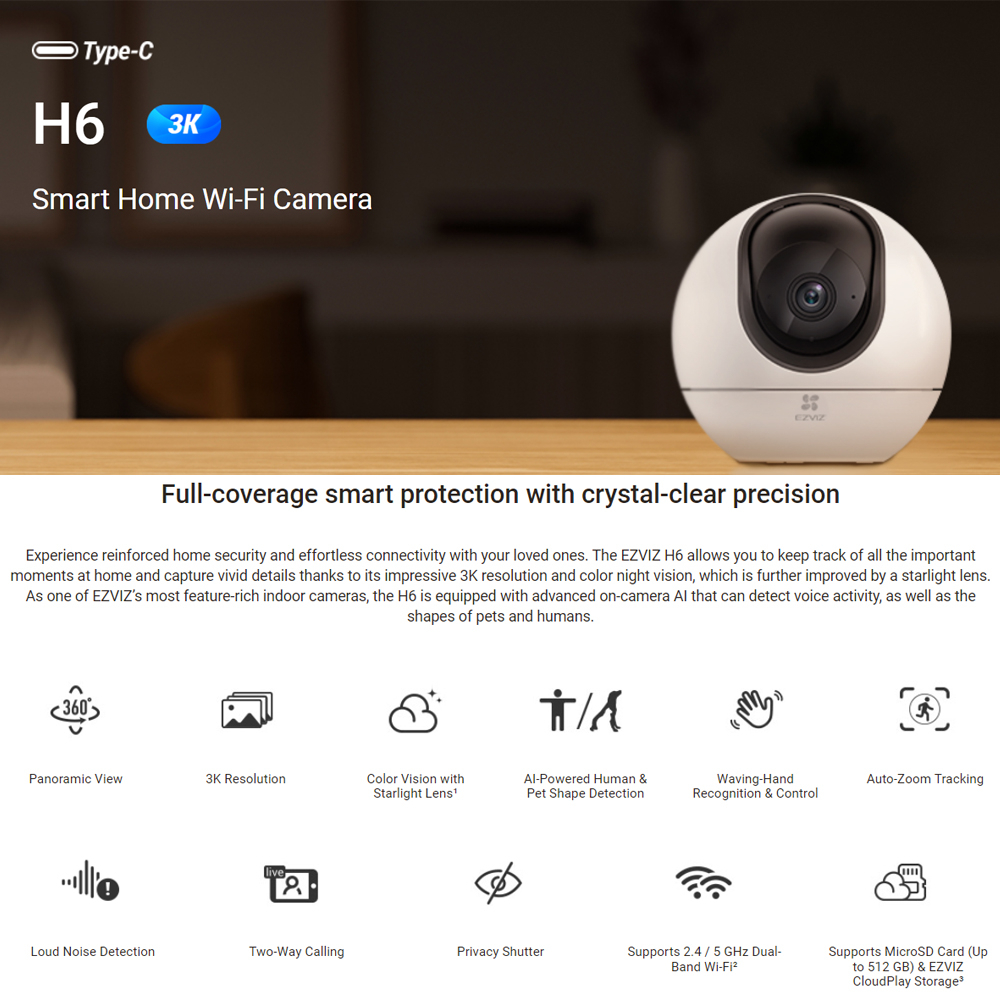 Ezviz C6N / Ezviz H6C Pro - Smart Wi-Fi Pan & Tilt Camera Security Indoor CCTV