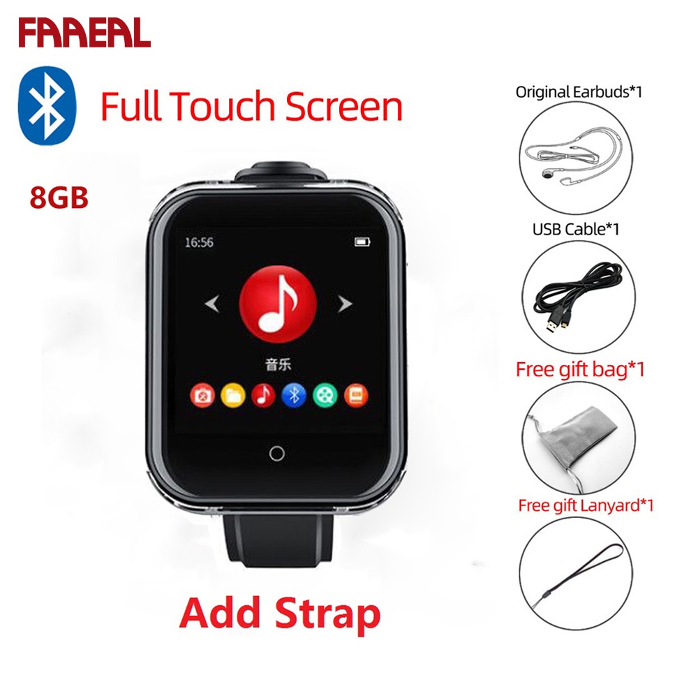 FAAEAL RUIZU M8 Bluetooth MP3 Player Full Touch Screen Music Player Wearable Mini Clip Sport Audio Player Support FM Radio Recorder E-Book Video