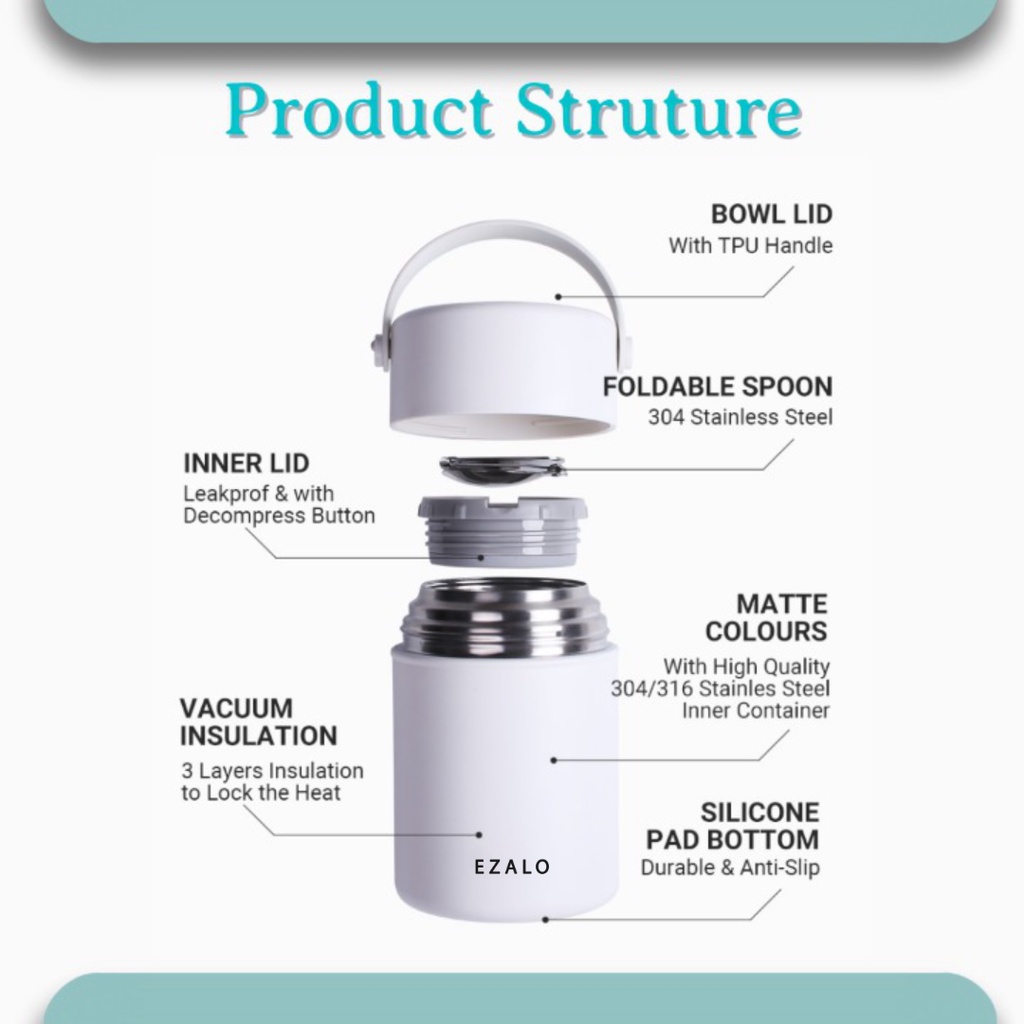 EZALO SUS316/SUS304 Jumbo Thermal Cook Food Jar (800/1000ml)