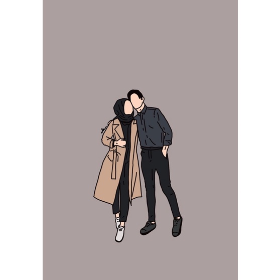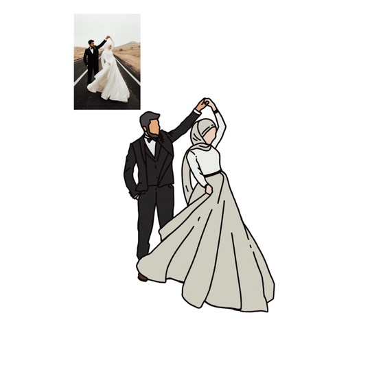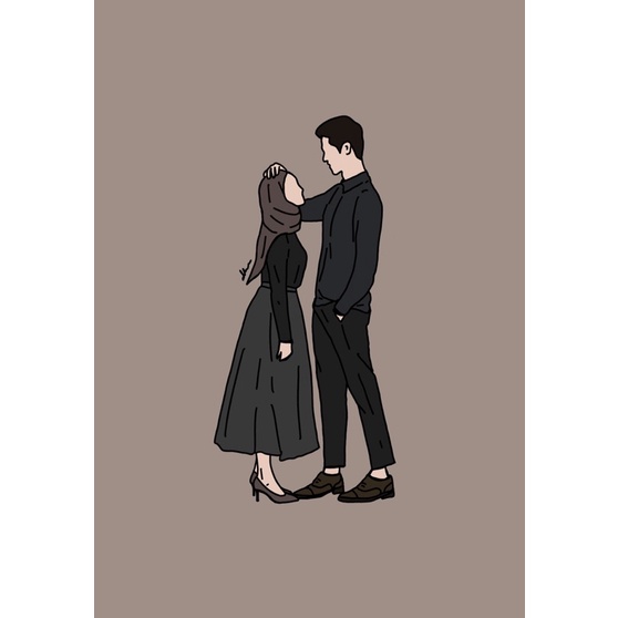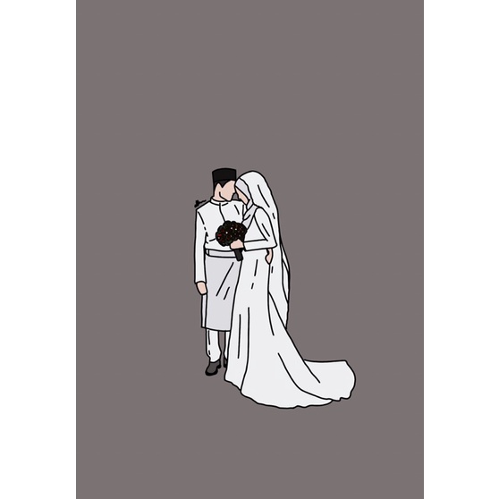 FACELESS COUPLE ILLUSTRATION ART/ DIGITAL ART (Tunang/nikah/couple pose)