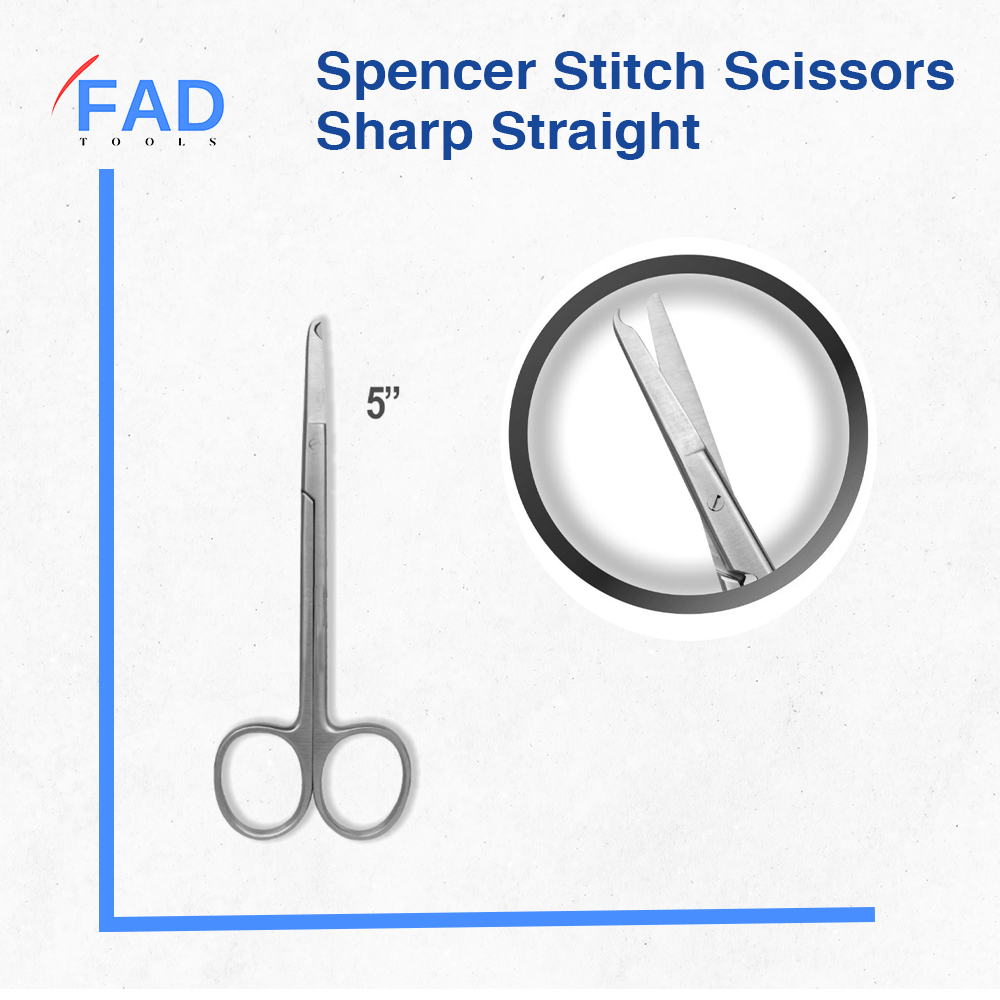 FAD Tools Spencer Stitch Scissors Sharp Straight 6" , 5" , 4.25" stainless steel Medical Surgical Scissors