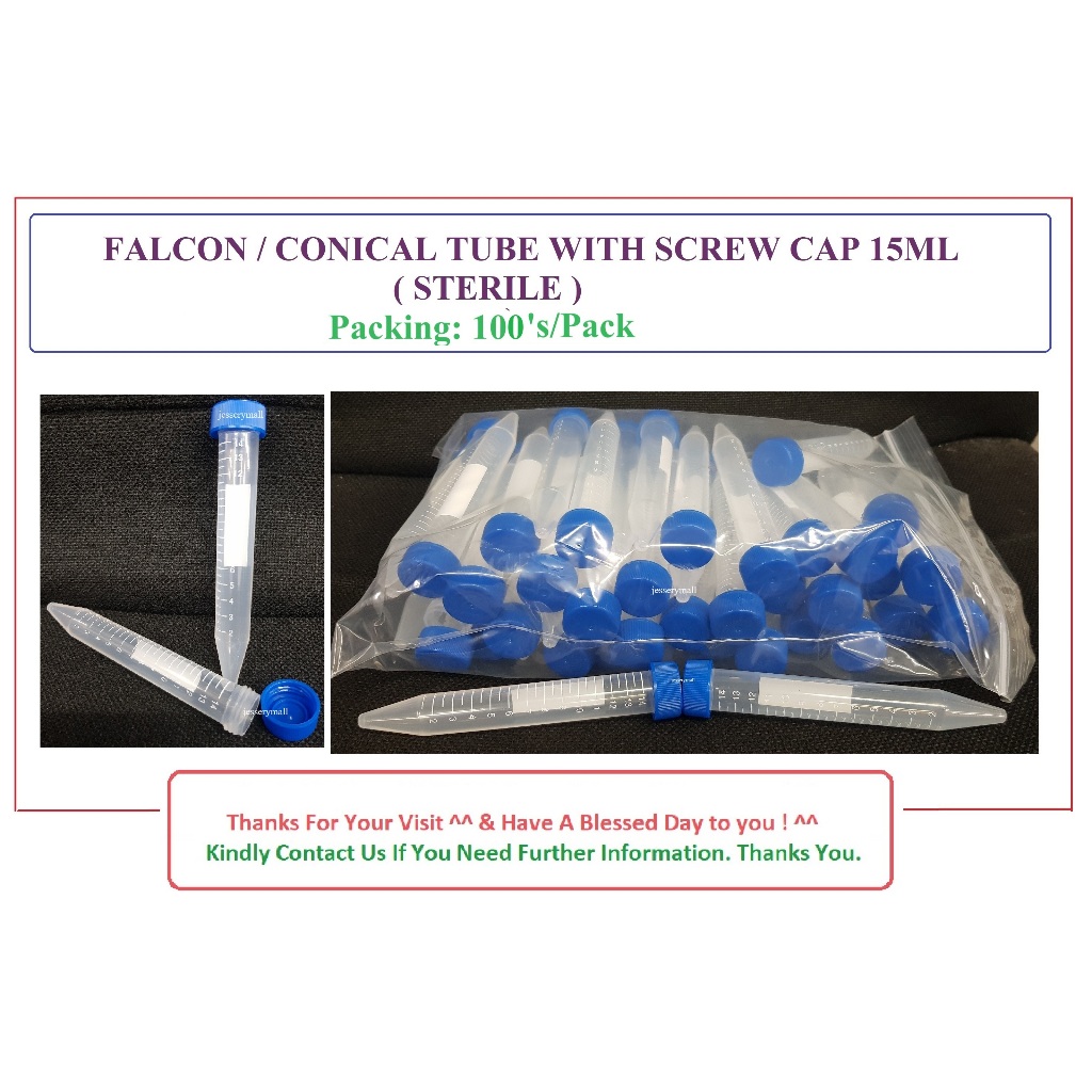FALCON / CONICAL / CENTRIFUGE TUBE WITH SCREW CAP ( STERILE ) 15ML : 100'S / PACK
