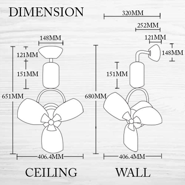FANCO 16" DC Motor Ceiling Fan & Wall Fan F333 (BLACK & MIX / PINE & WHITE)