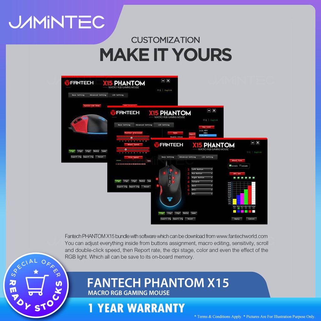 FANTECH PHANTOM X15 MACRO RGB GAMING MOUSE 4800DPI GAMING MOUSE 7D PROGRAMMABLE BUTTONS