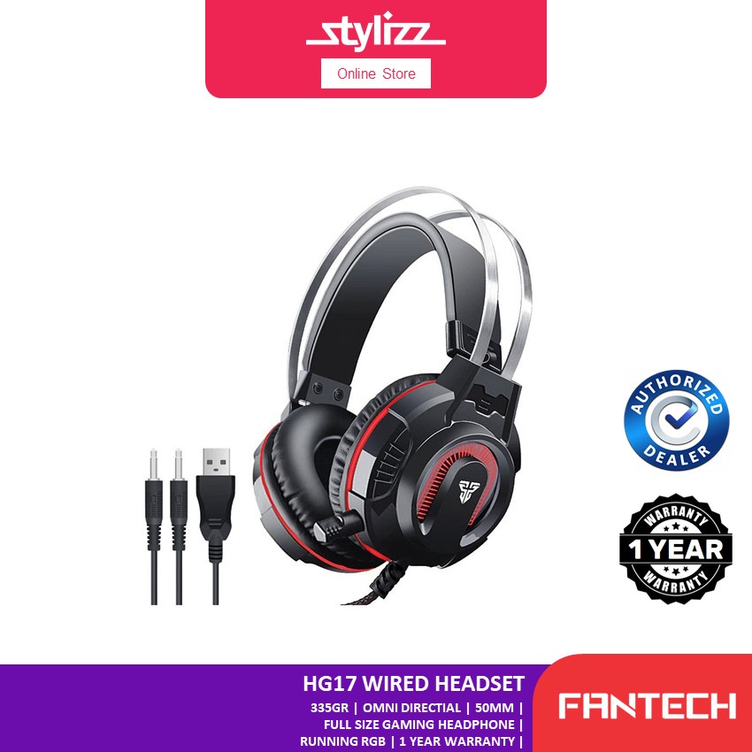 FANTECH WIRED HEADSET(HG17) 335G, OMNI DIRECTIAL, 50MM, FULL SIZE GAMING HEADPHONE, RUNNING RGB