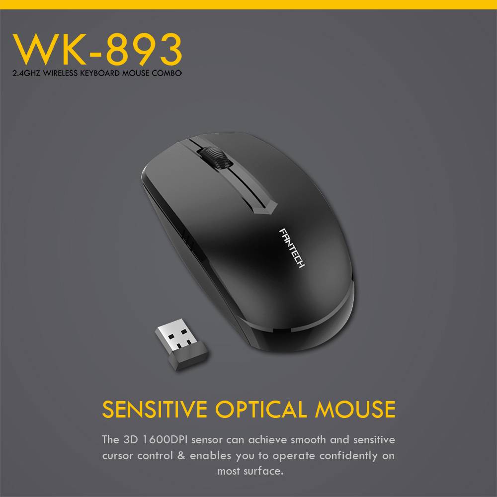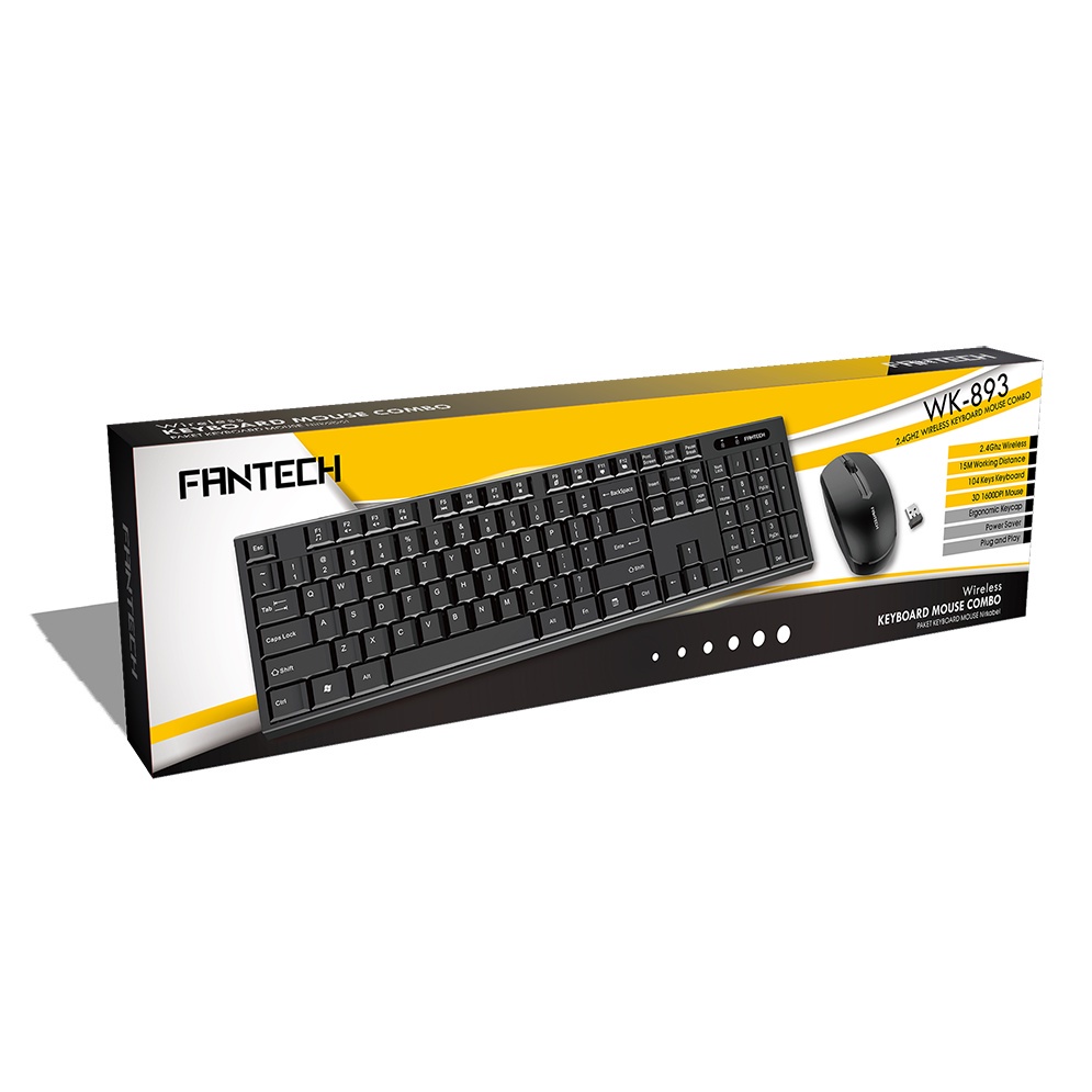 FANTECH WK-893 2.4GHz WIRELESS OFFICE KEYBOARD & MOUSE COMBO BUTTONS CLEARLY LEGIBLE WK893 (KB92)