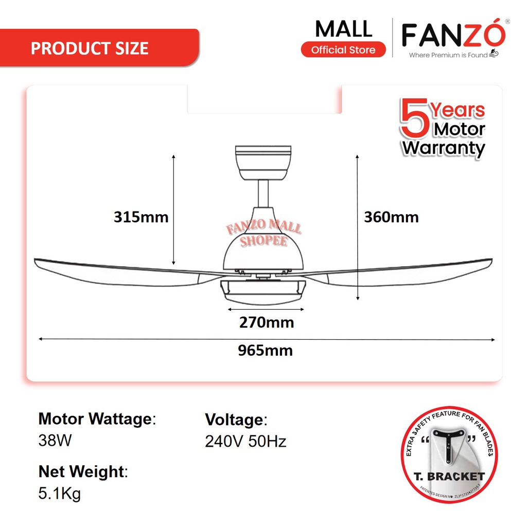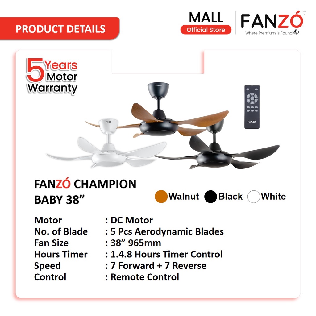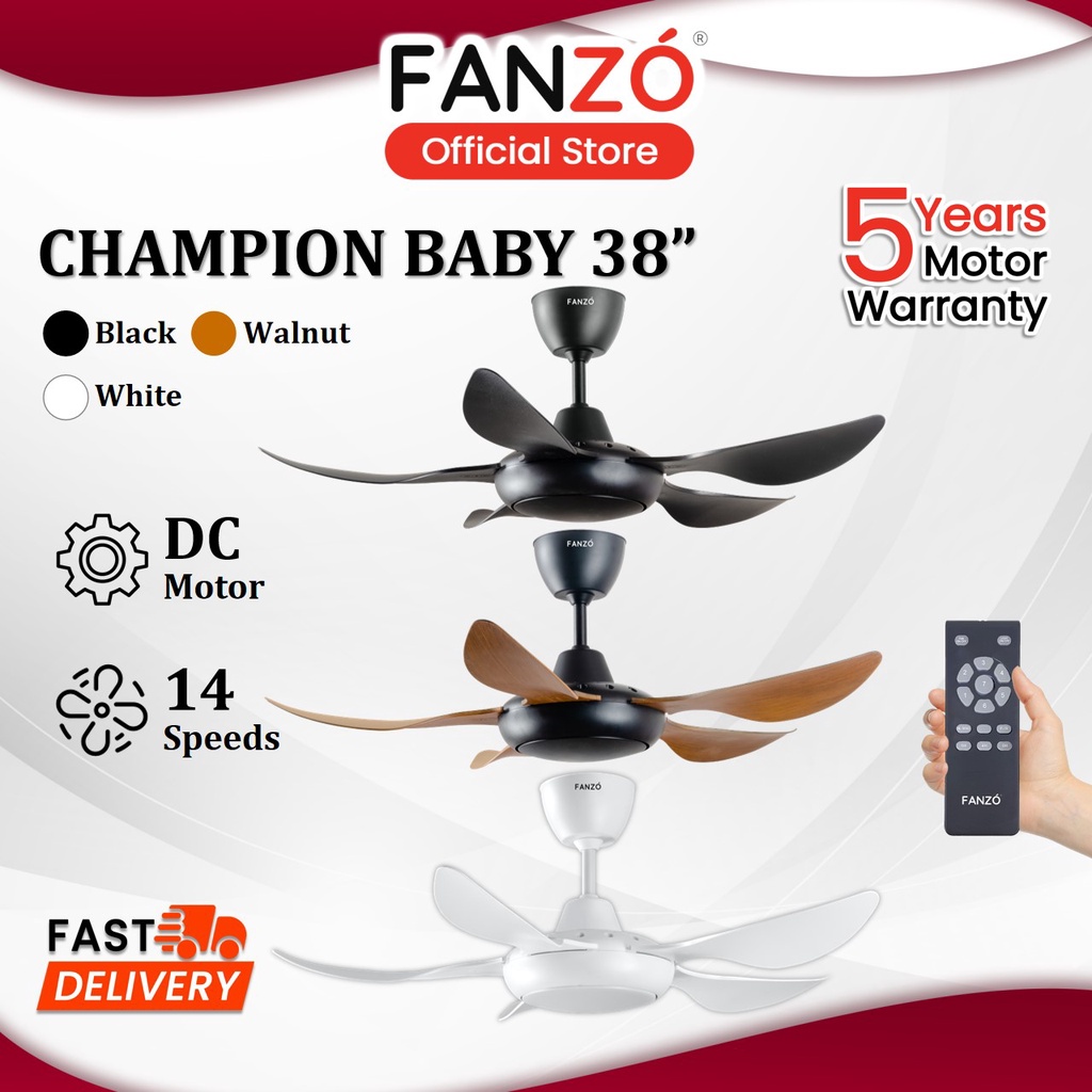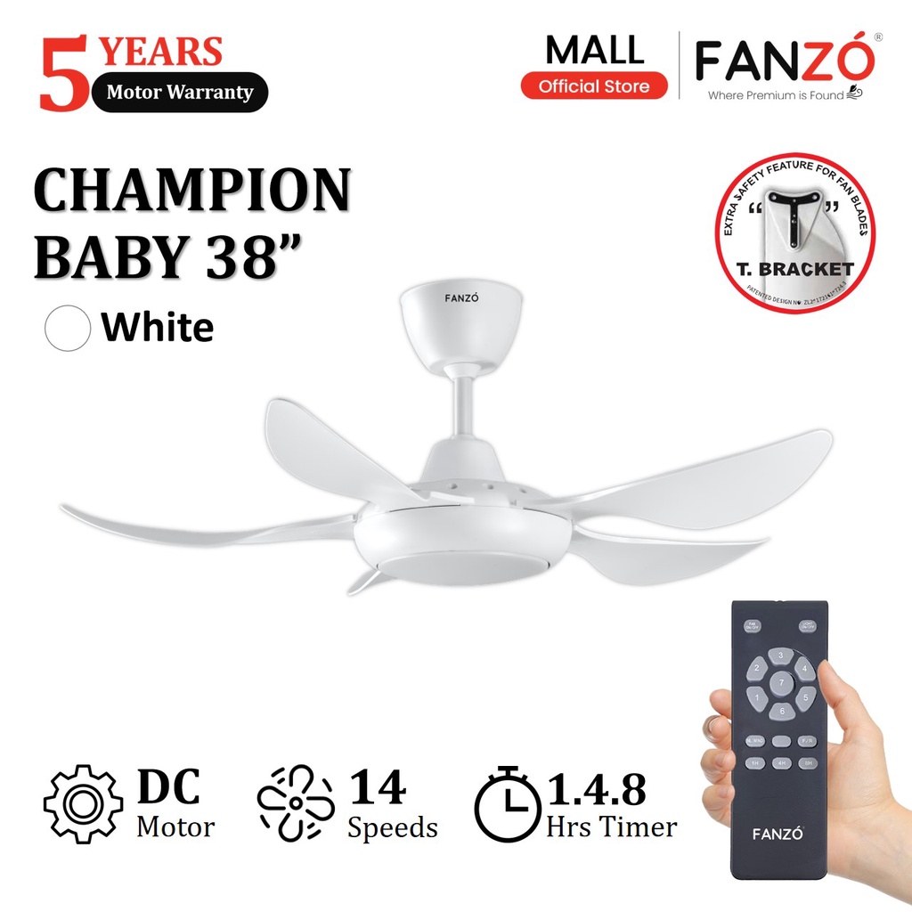 FANZÓ Champion Baby 5 Blade DC Motor Ceiling Fan With 14 Speeds Remote Control (38") 风扇