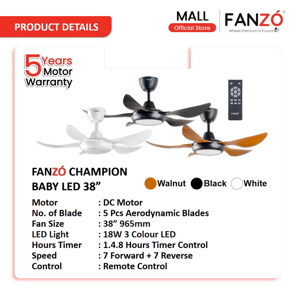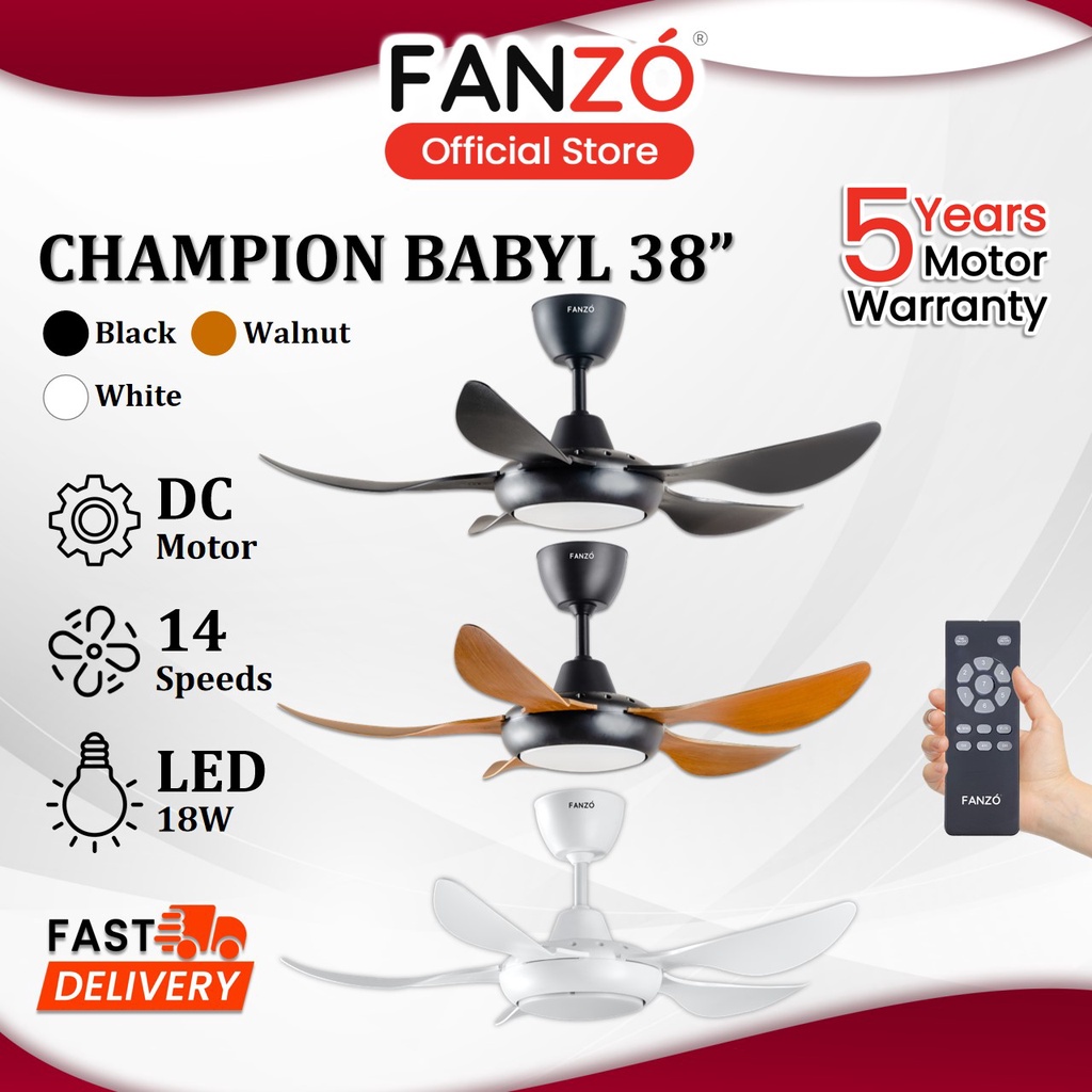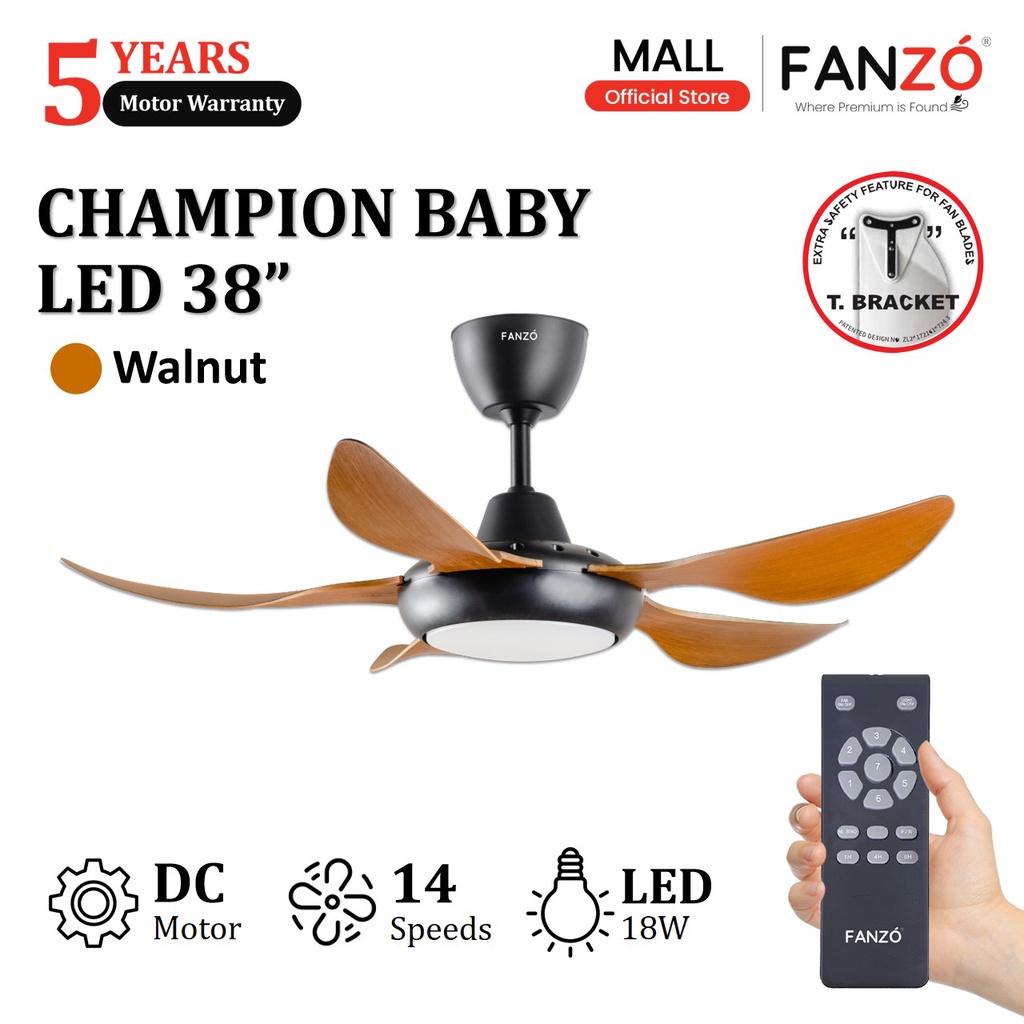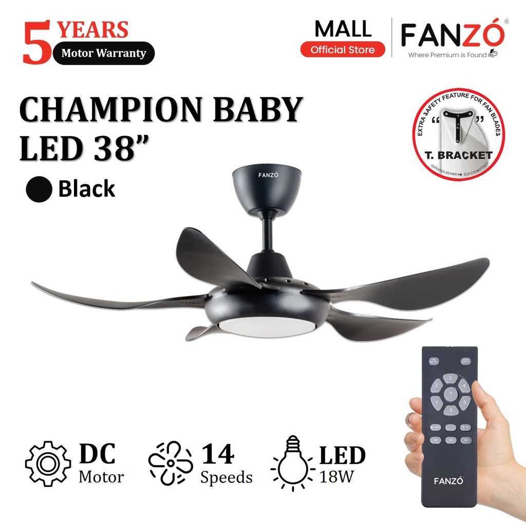 FANZÓ Champion Baby Led 5 Blade DC Motor Ceiling Fan With Light 14 Speeds Remote Control (38")