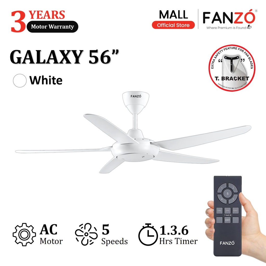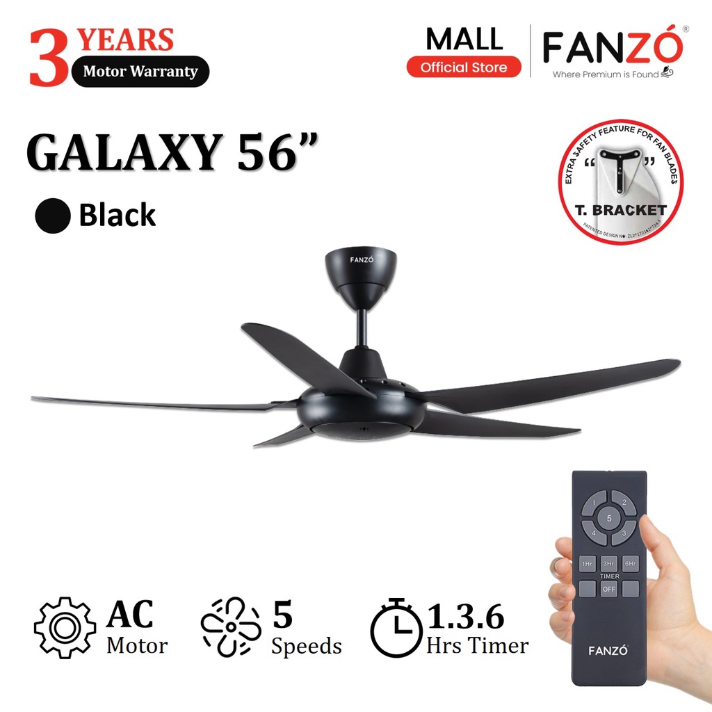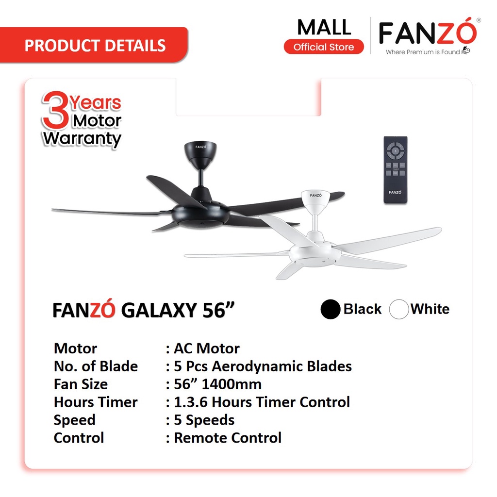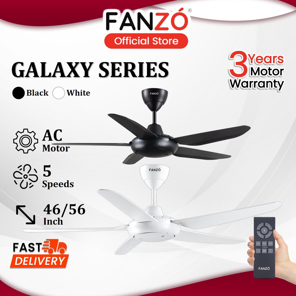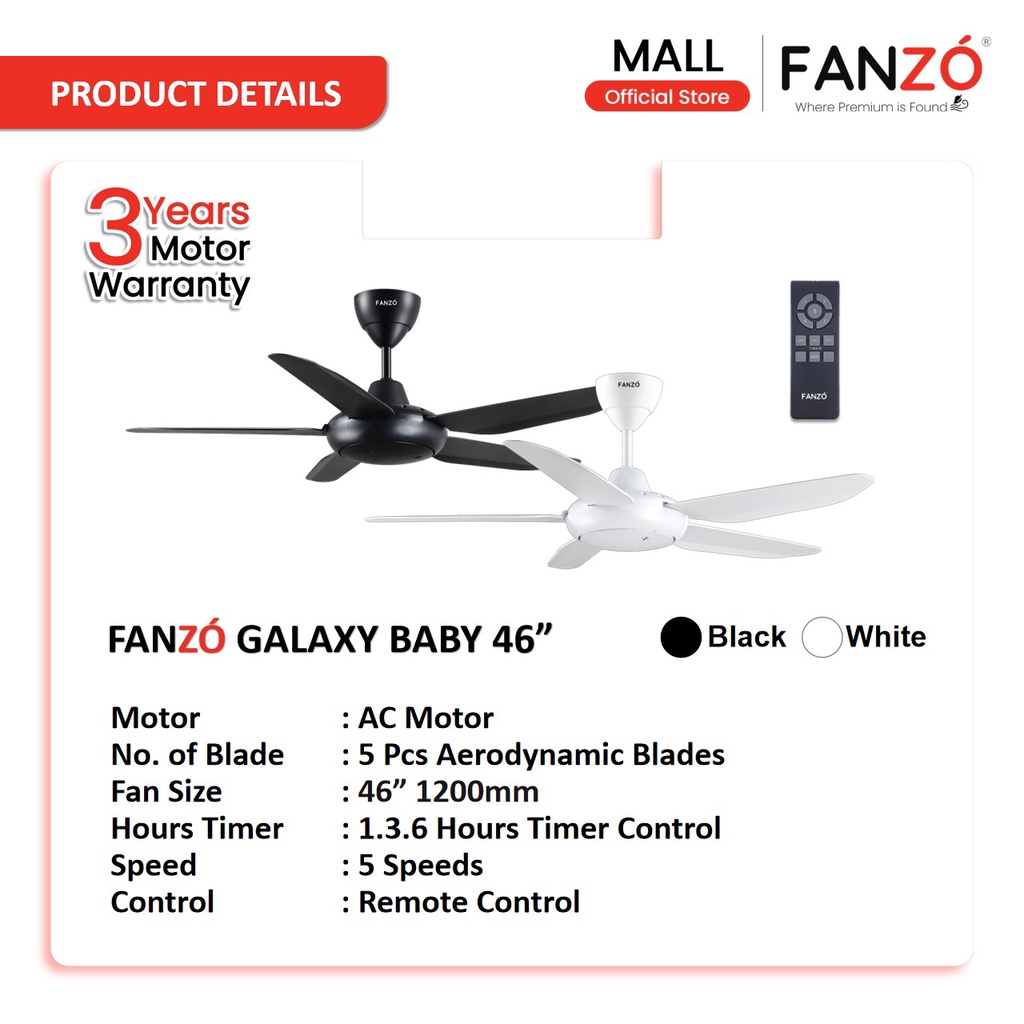 FANZÓ GALAXY BABY 5 Blades Baby Fan (46")/FANZO GALAXY AC Ceiling Fan with 5 Speeds Remote Control - Black/White (56")