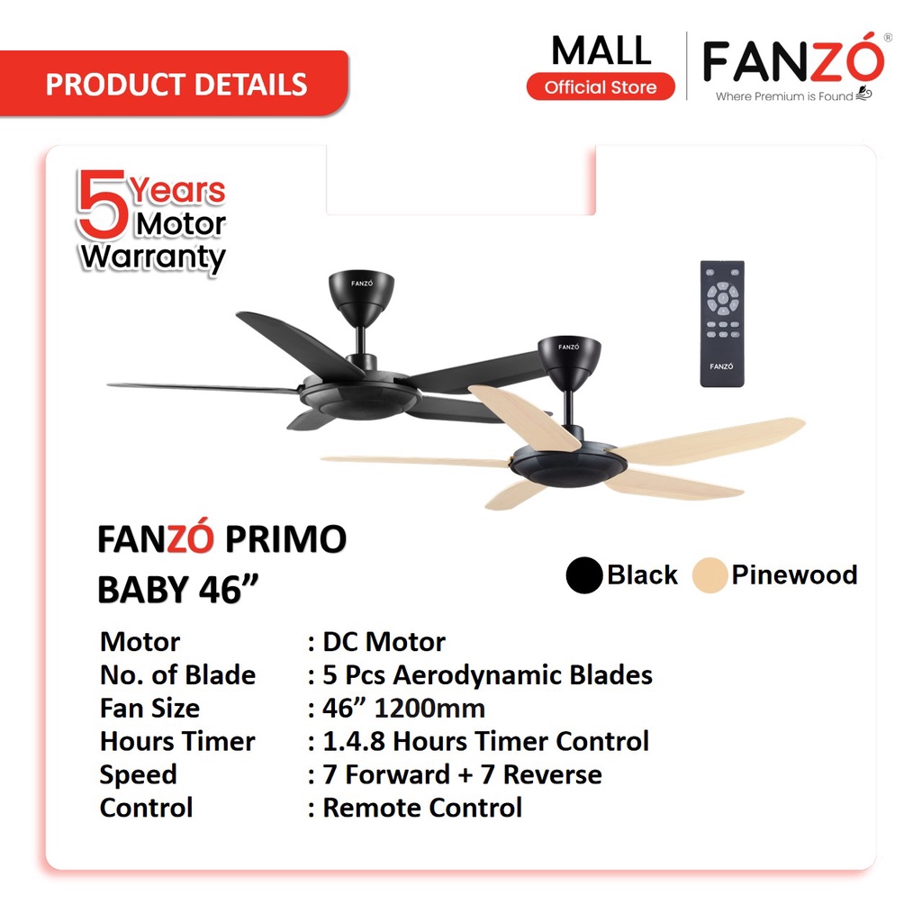 FANZÓ Primo Baby 5 Blades DC Motor Ceiling Fan With 14 Speeds Remote Control (46")