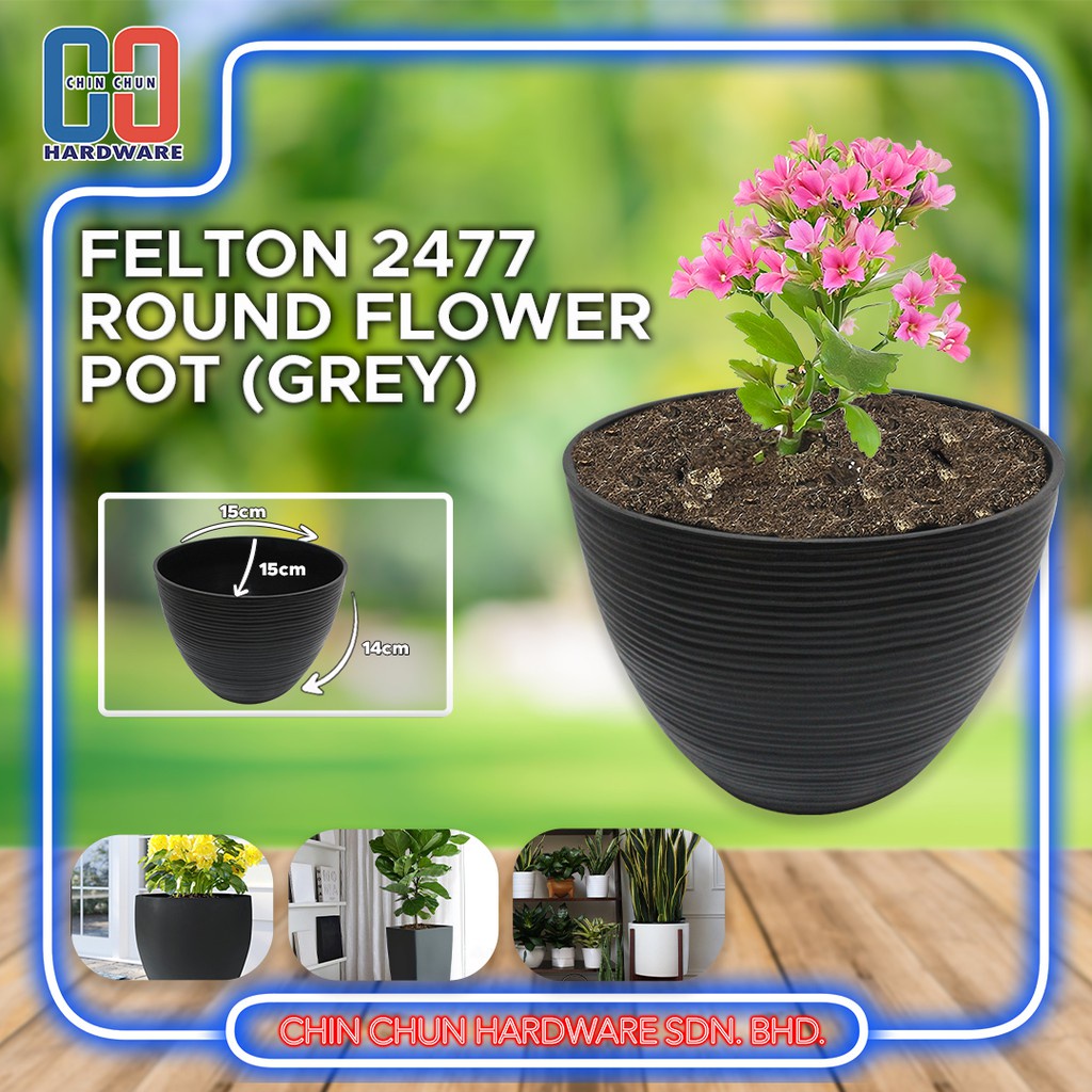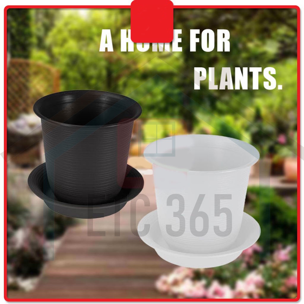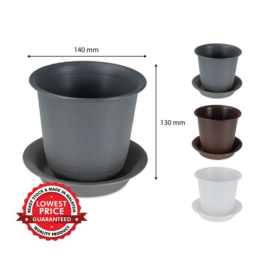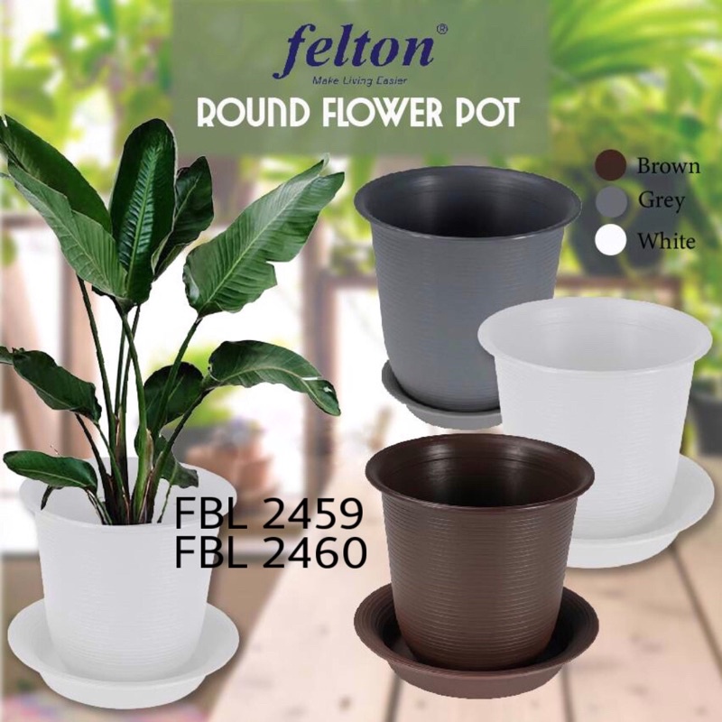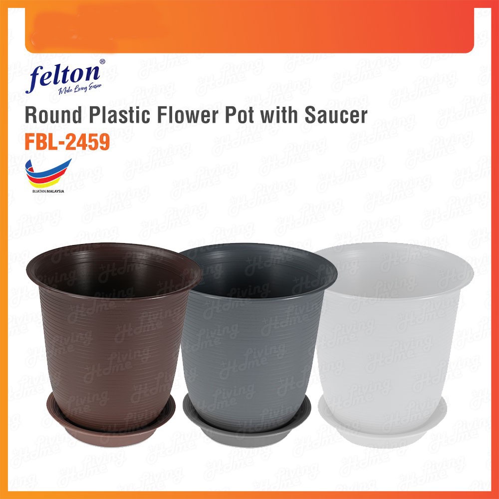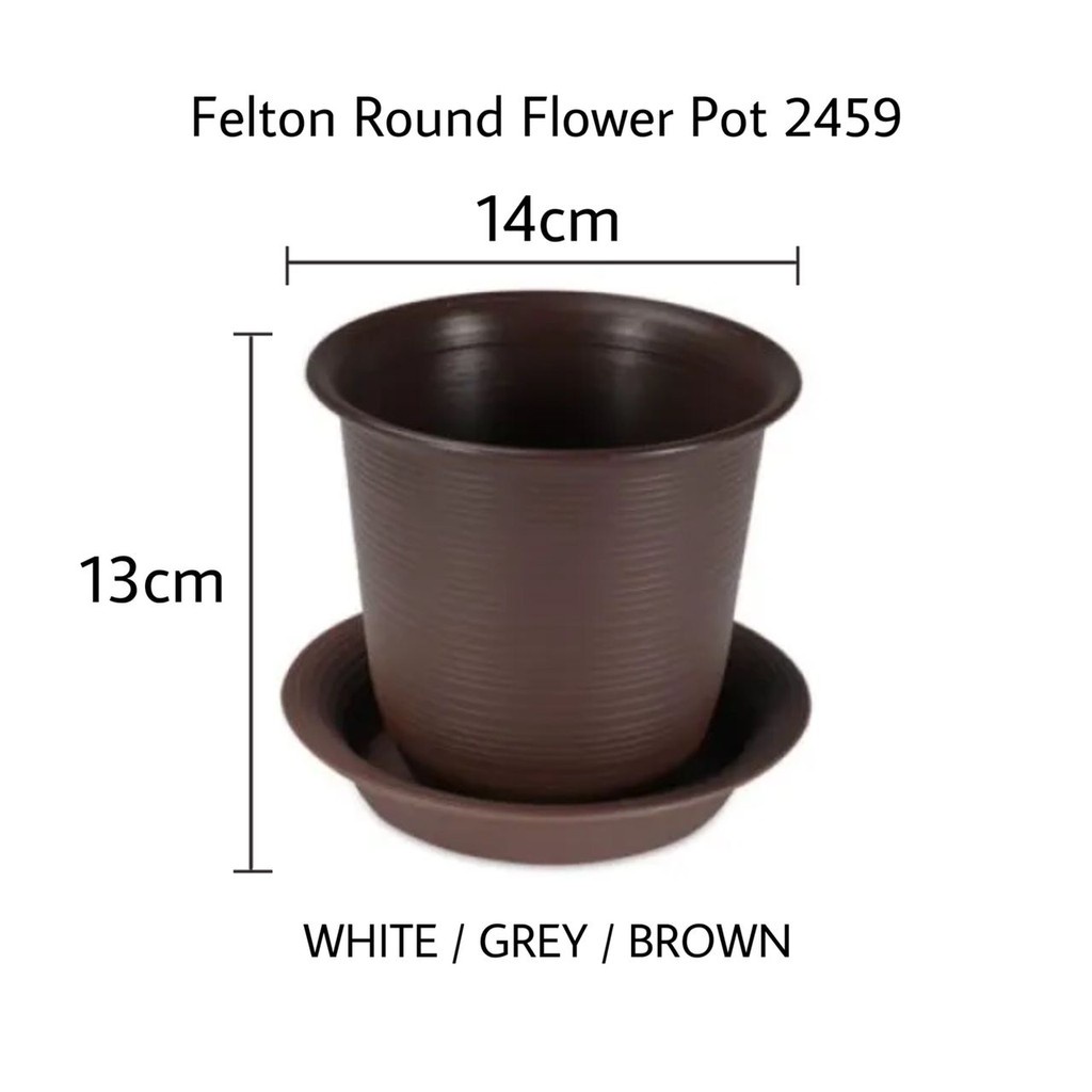 FBL2459 FBL2460 Felton Round Flower Pot with Saucer 14cm 20cm - Plastic Flower Pot Aneka Gardening Pasu Kecil