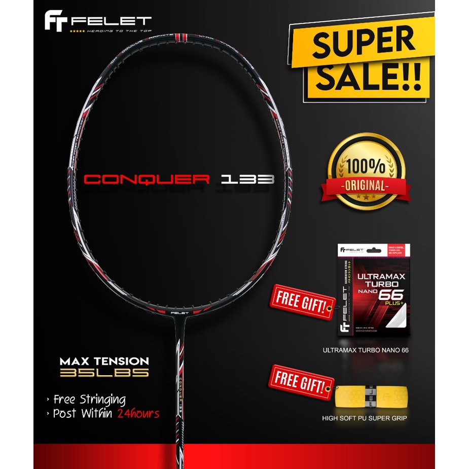 FELET 100% Original Conquer Badminton Racket by FLEET ( free grip & string )