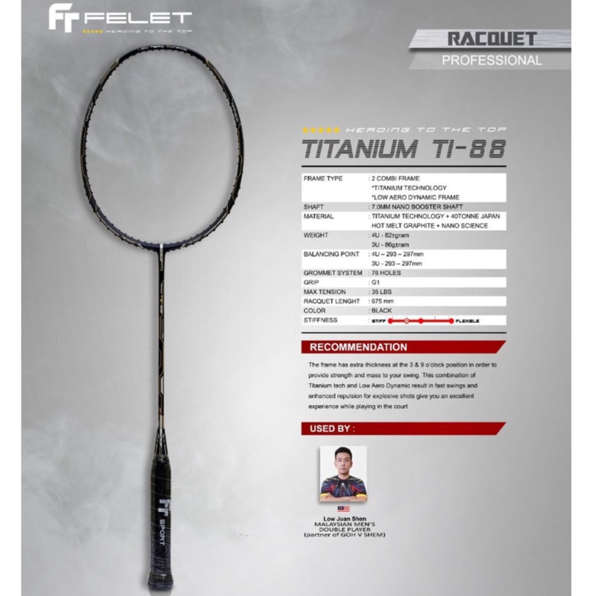 FELET BADMINTON RACKET 3K WOVEN FENCE / TITANIUM TI-88 (100% Original)