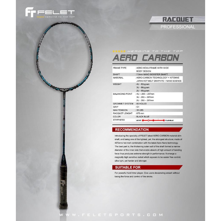 FELET Badminton Racket AERO CARBON (100% Original)(FREE GRIP)