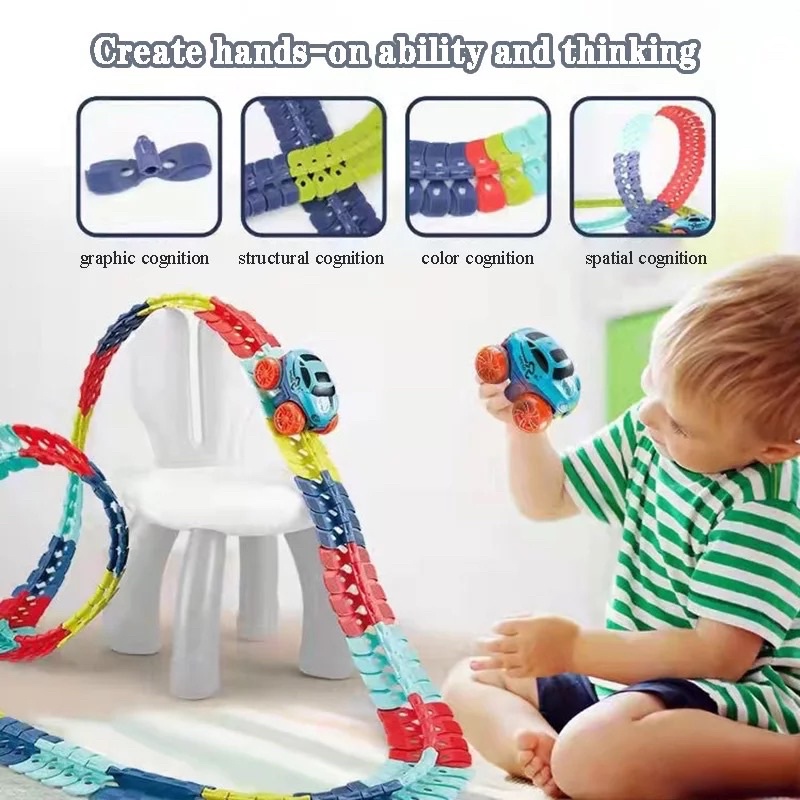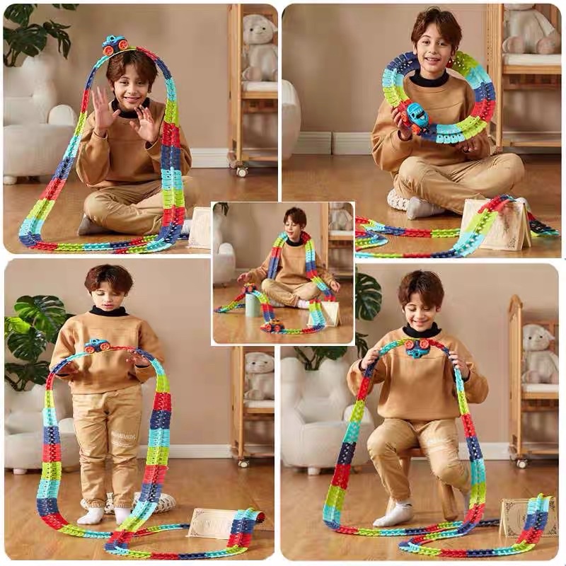 FEO Changeable Track DIY LED Electric Race Car Flexible Assembled Rail Car Toy Train Railway Toy Car Kereta Mainan Budak