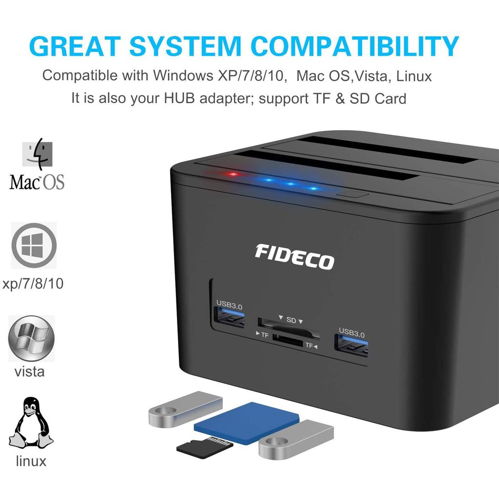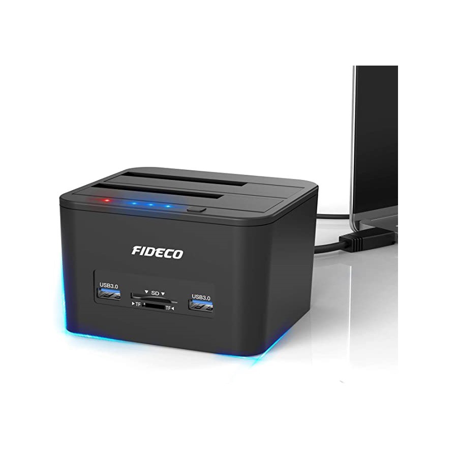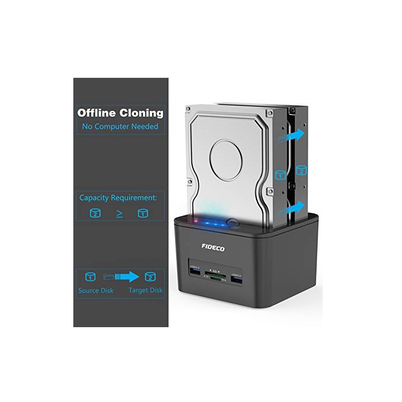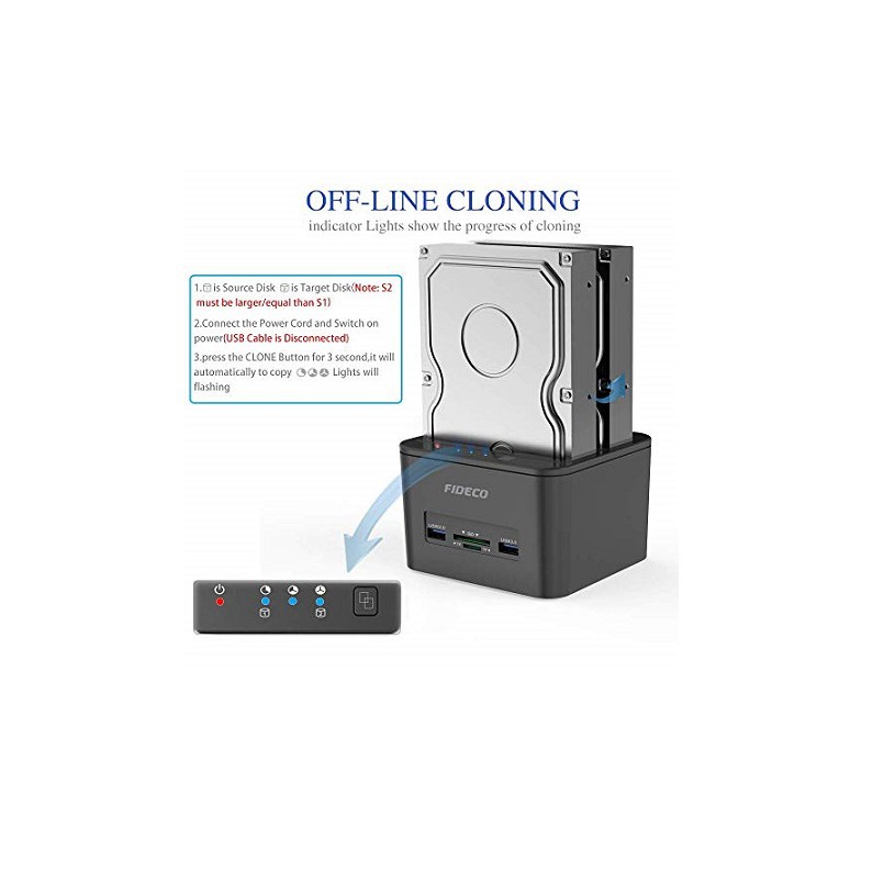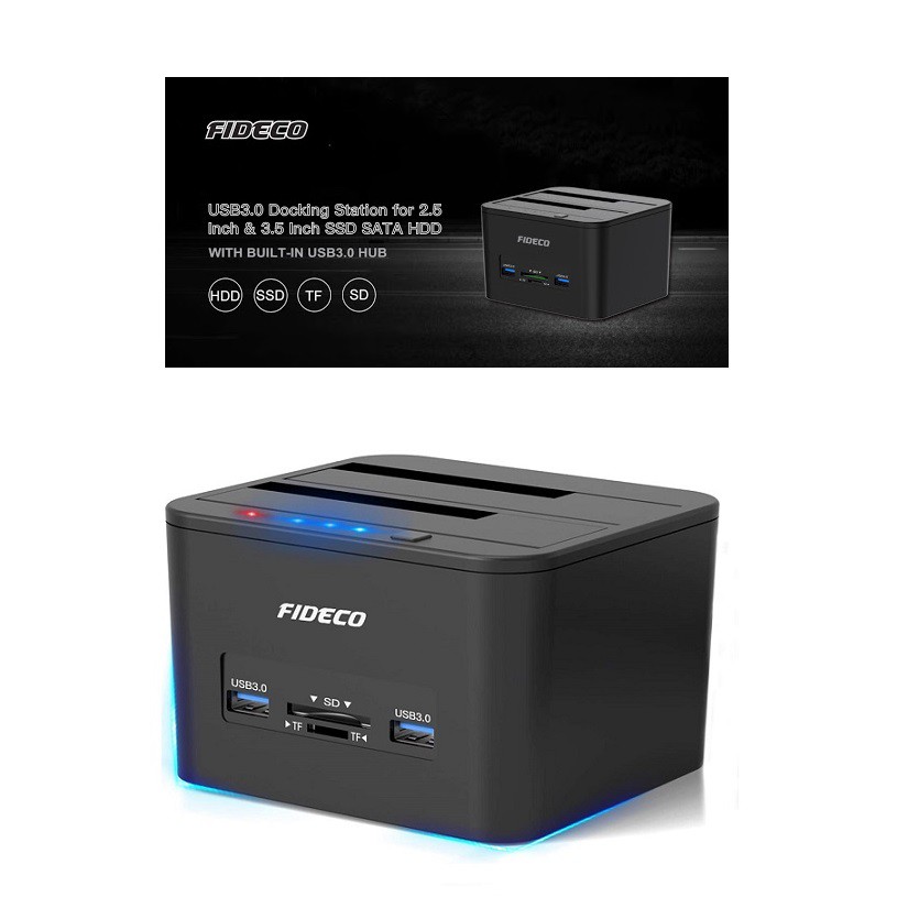 FIDECO DOCKING STATION USB 3.0 HDD DUAL-BAY+USB DOCKING WITH OFFLINE CLONE/DUPLiCATOR 2.5/3.5 HDD, SSD ,SD CARD