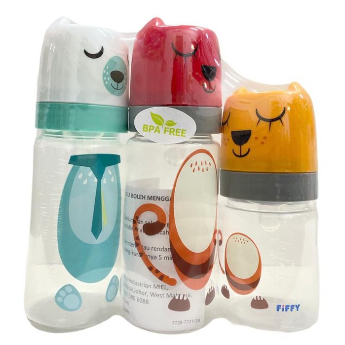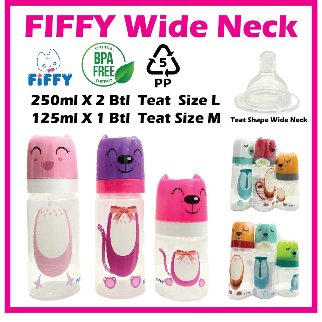 FIFFY Wide Neck Bottle (250ml X 2 + 125ml X 1) Botol Susu Fiffy Wide Neck
