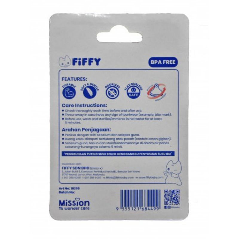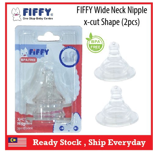 FIFFY Wide Neck Teat (2pcs)/ Puting Botol Susu Wide Neck - X Cut