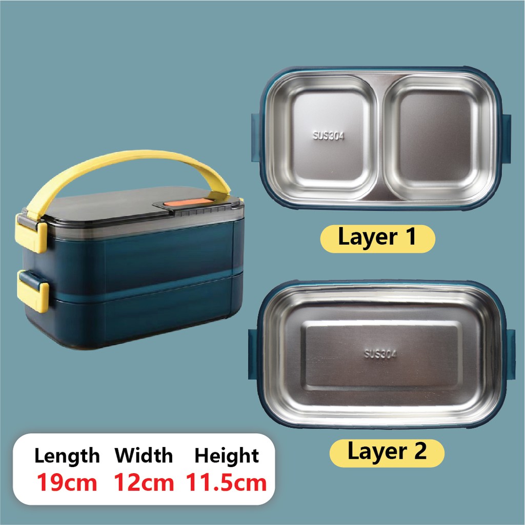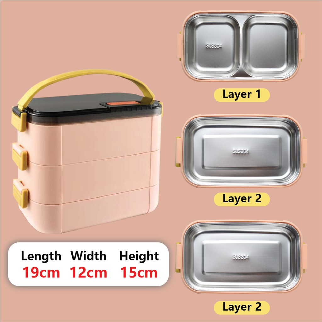 FIGARO Bekal Makanan Bekas Nasi Tahan Panas Mangkuk Tingkat Lunch Box Stainless Steel Keep Warm With Bag Microwave Safe