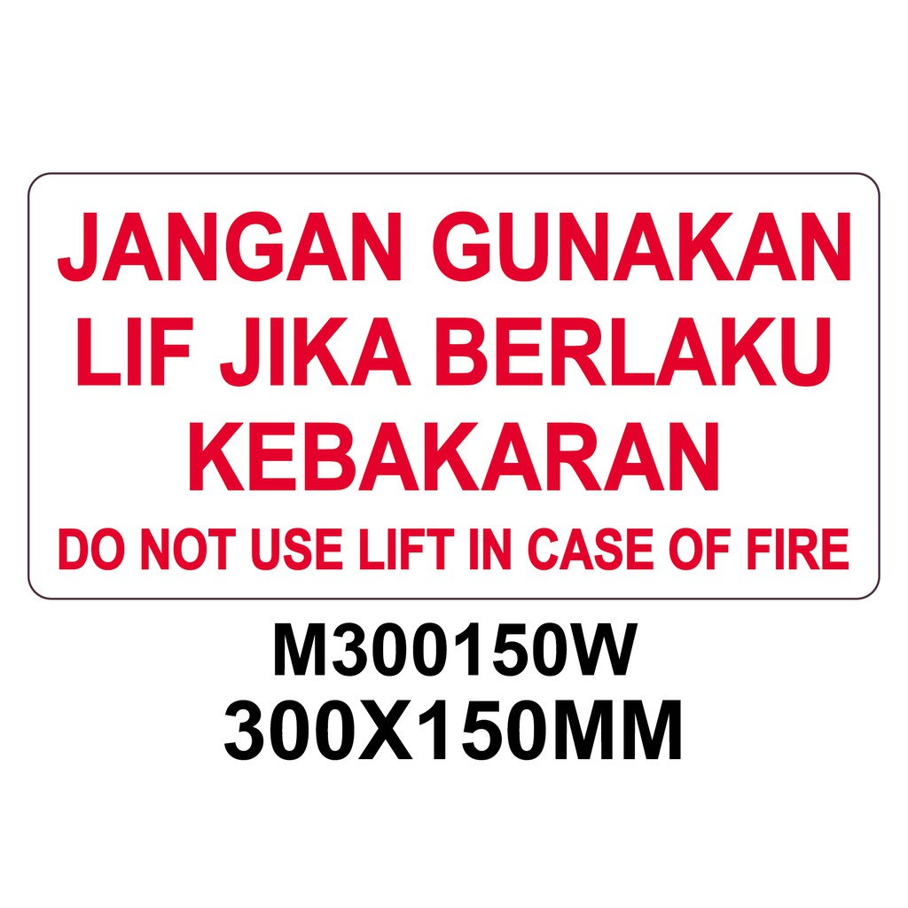 FIRE HOSE, FIRE EXTINGUISHER, LIFT BOMBA, FIRE ALARM, FIRE EQUIMENT, FIRE DOOR TO BE CLOSED AT ALL TIME, DO NOT USE LIFT