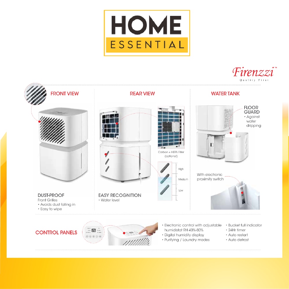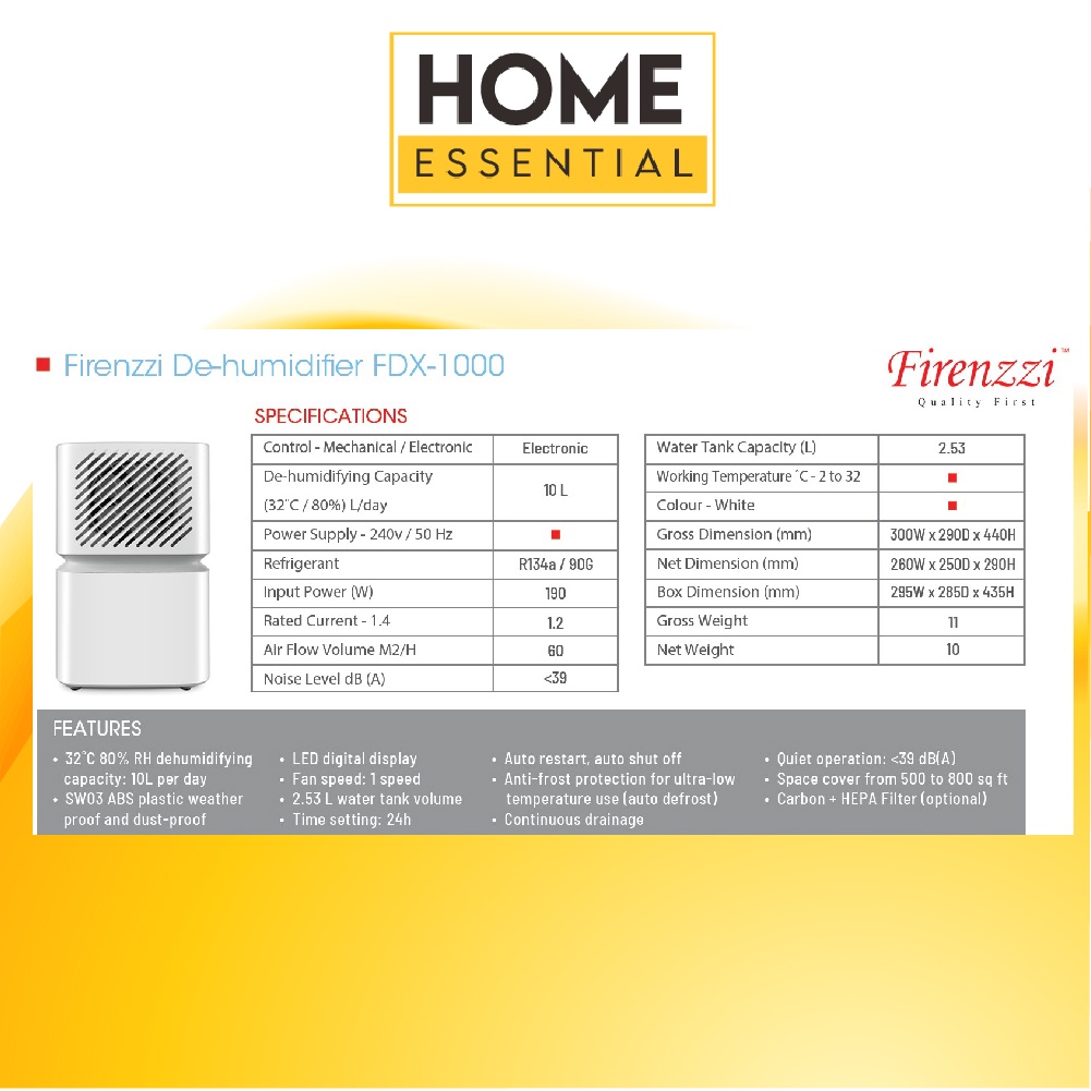 Firenzzi 10L Anti-frost Protection Dehumidifier FDX-1000