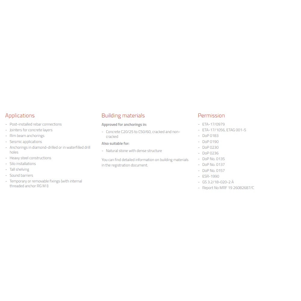 FISCHER FIS EM Plus 390 S / FIS EM Plus 585 S Epoxy Injection Mortar Anchoring Adhesive (Slow Cure)