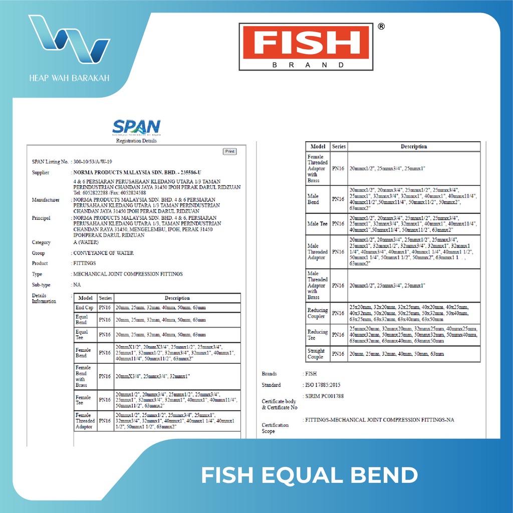 FISH POLY ELBOW PN16 (20MM - 40MM) POLY FITTING (SPAN CERTIFIED)